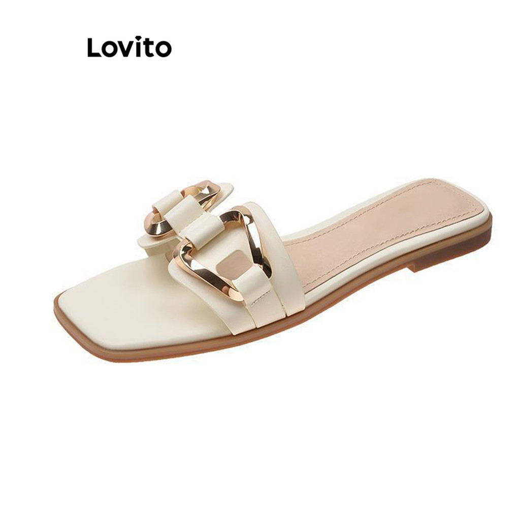 Lovito Sandálias Planas Casuais Femininas de Metal Liso LFA45389
