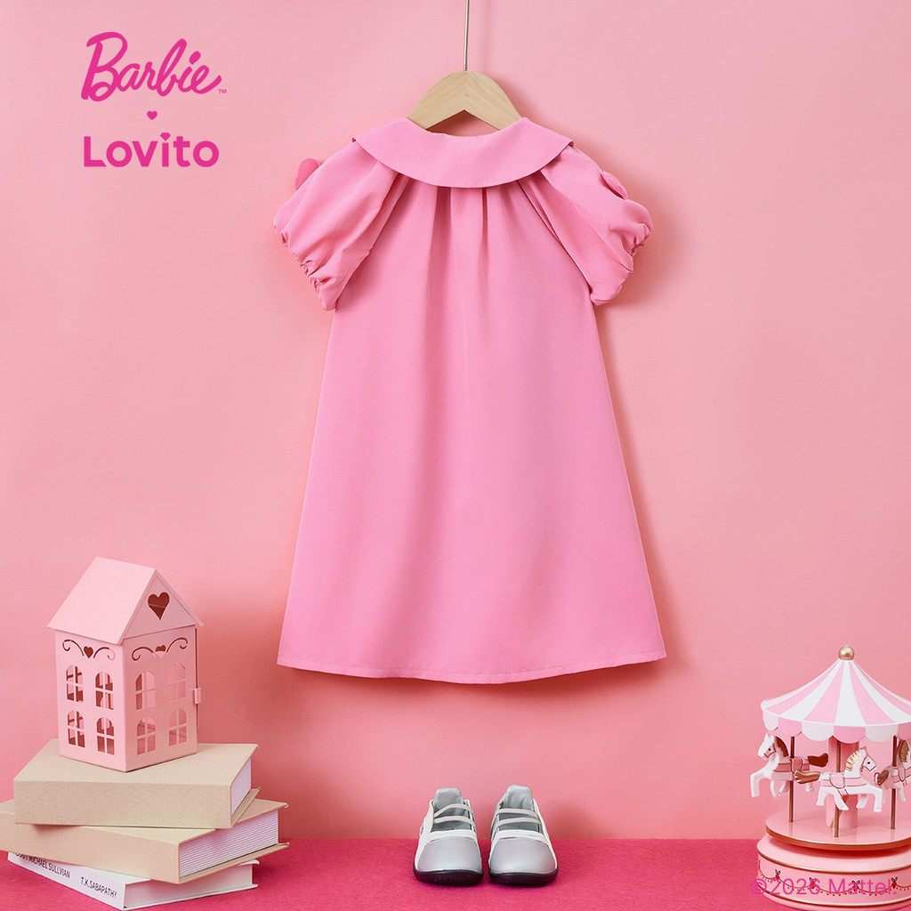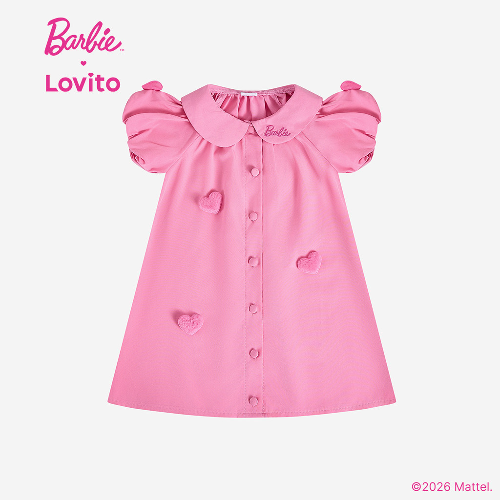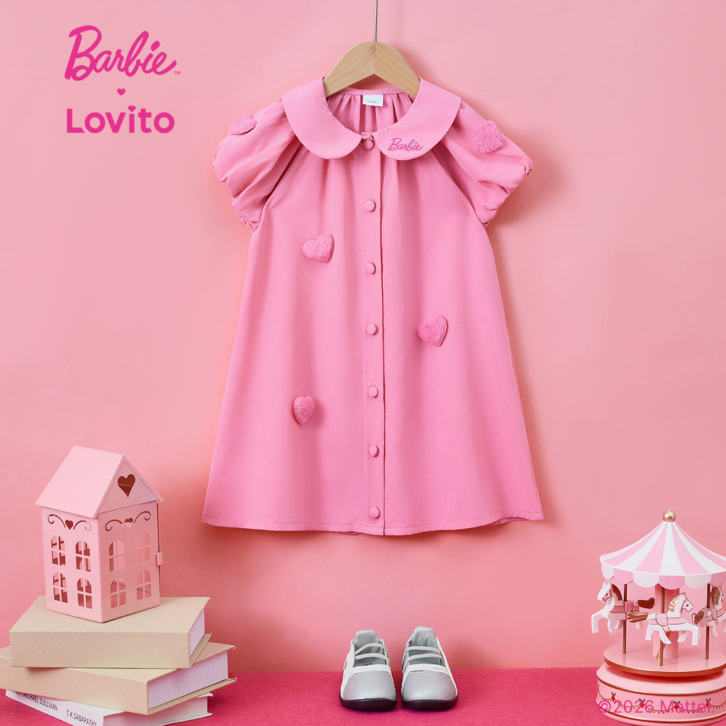 (New arrival) Barbie™ X Lovito Kids Vestido Rosa Primavera/verão com Bordado de Coração para Menina DRBL2PAD004