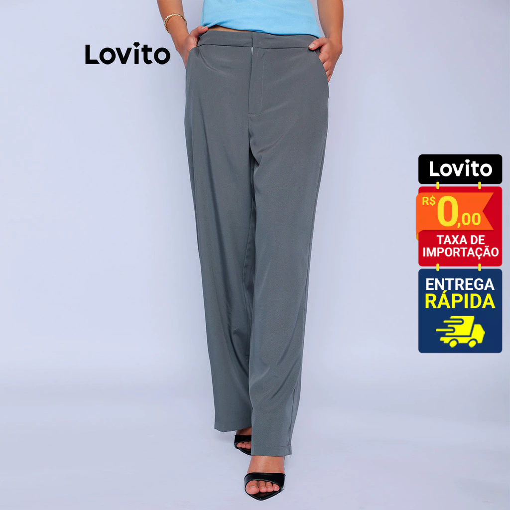 Lovito Calça Lisa Elegante Feminina LB785BRL815
