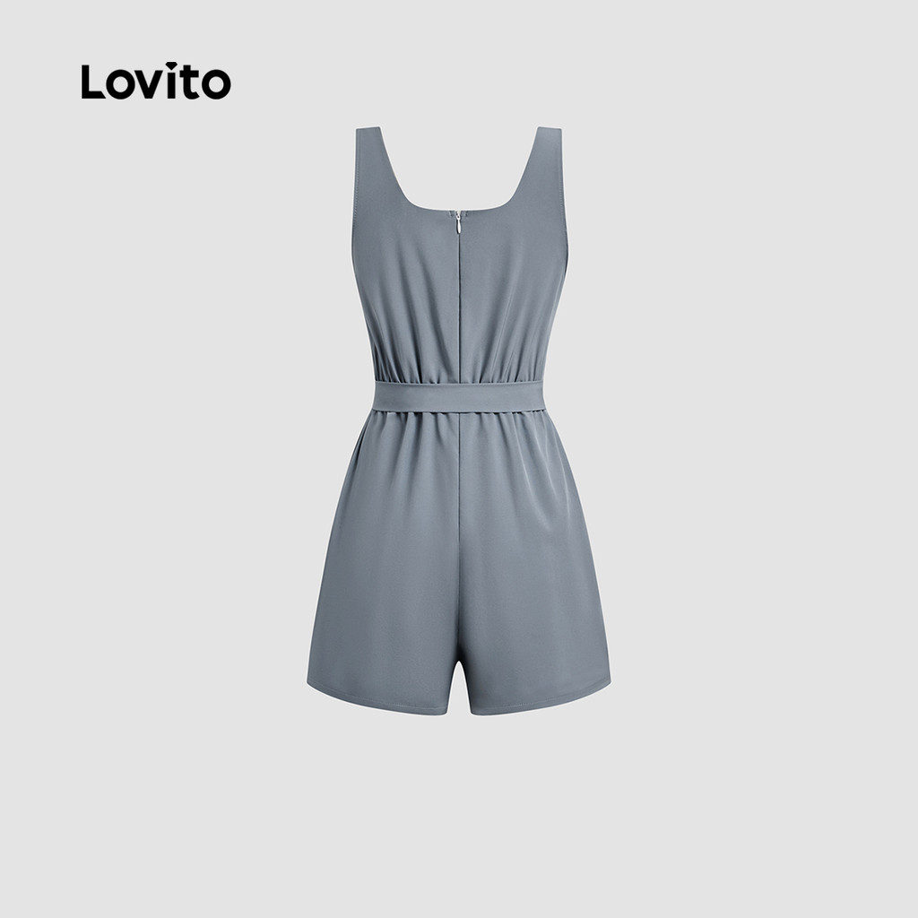 Lovito Macacão Elegante com Cinto Bolsos Primavera/verão Cinza para mulheres L149ED082