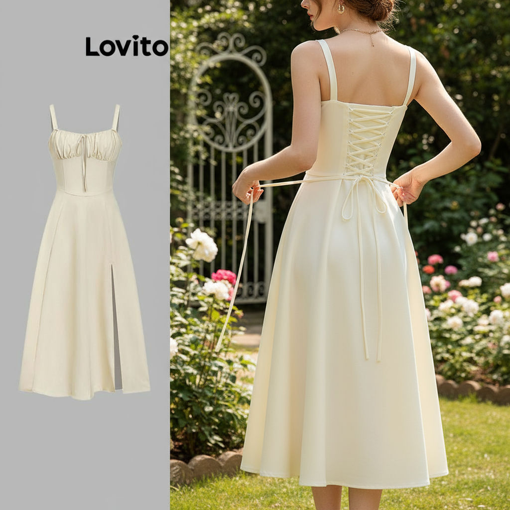 Lovito Vestido Feminino Elegante com Amarração Frontal e Costas, Vestido de Verão L74ED185