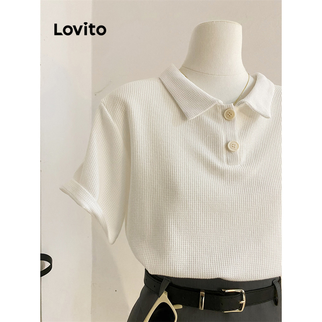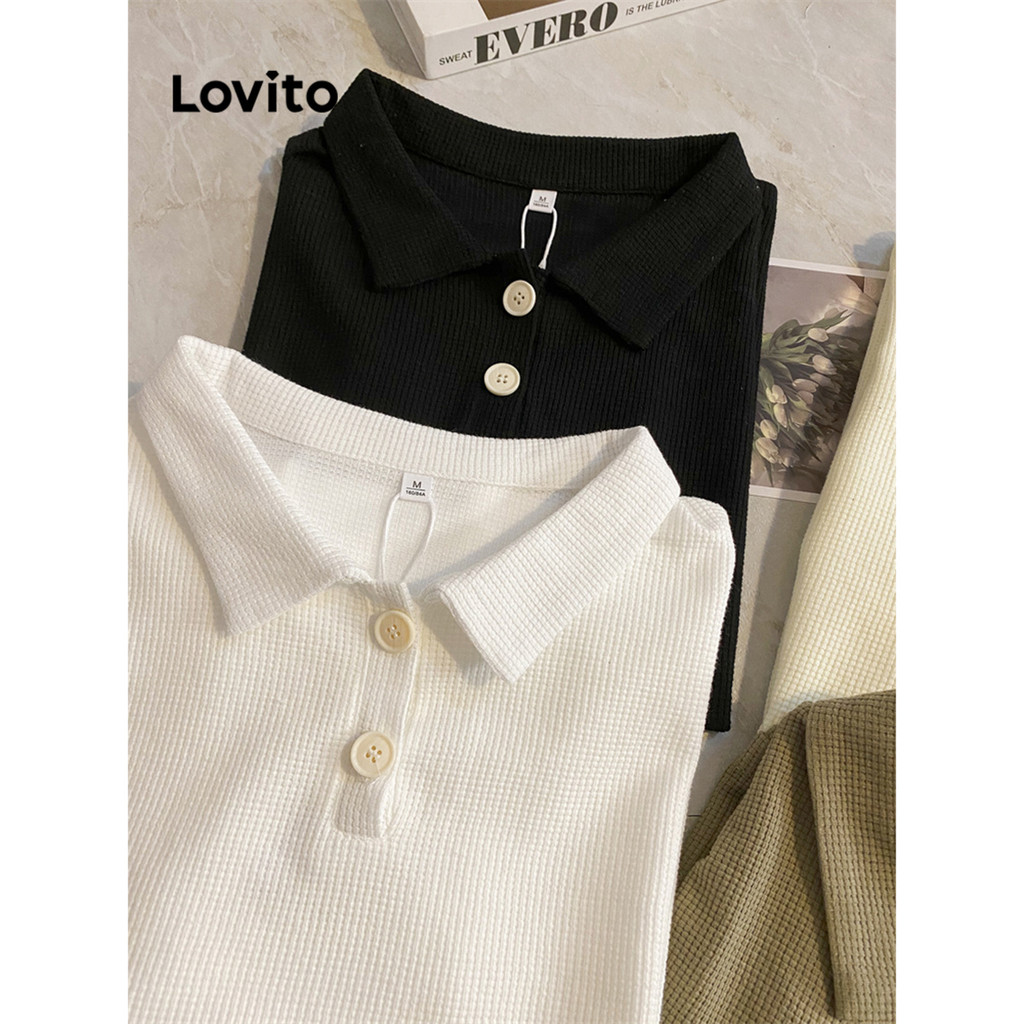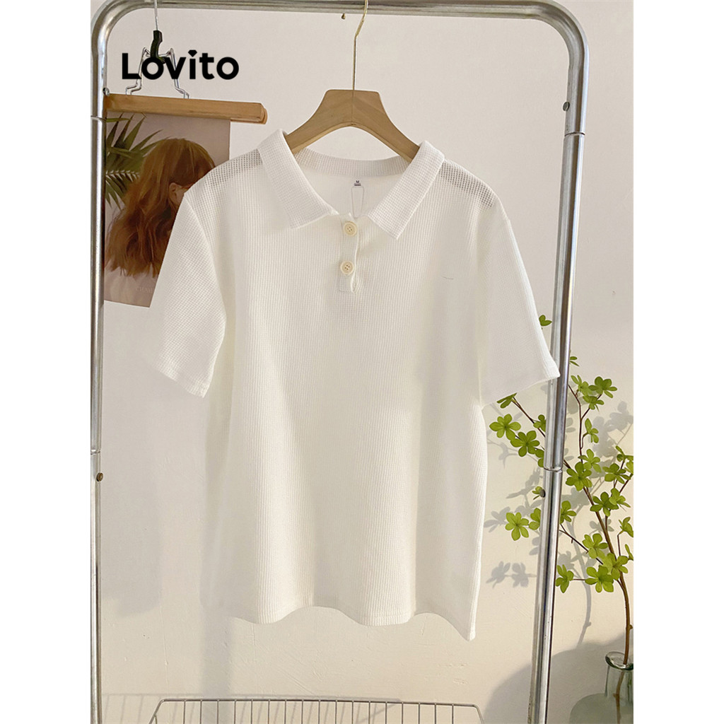 Lovito Camisa Polo Feminina Casual L68ED039 em Malha Waffle Lisa (Multicolorida)