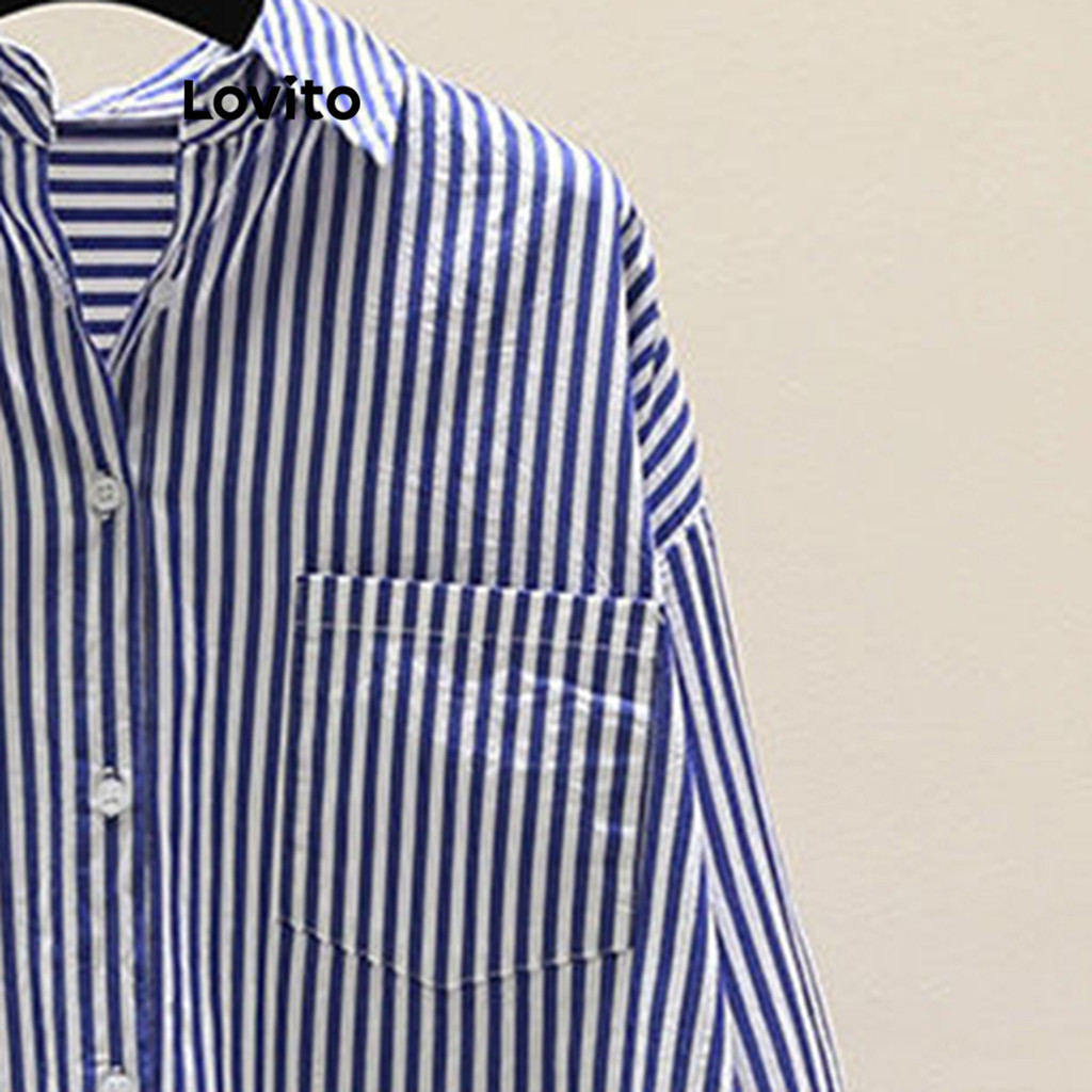 Live Hosts' pick Blusa casual listrada com botões para mulheres LNL69188