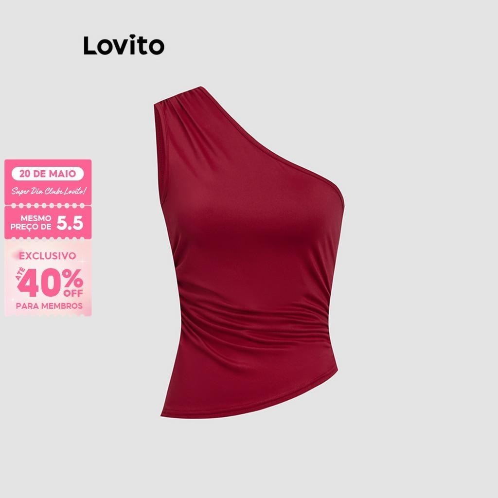 (Trendy) Lovito Casual Simples Assimétrico Regata para Mulheres L120ED395