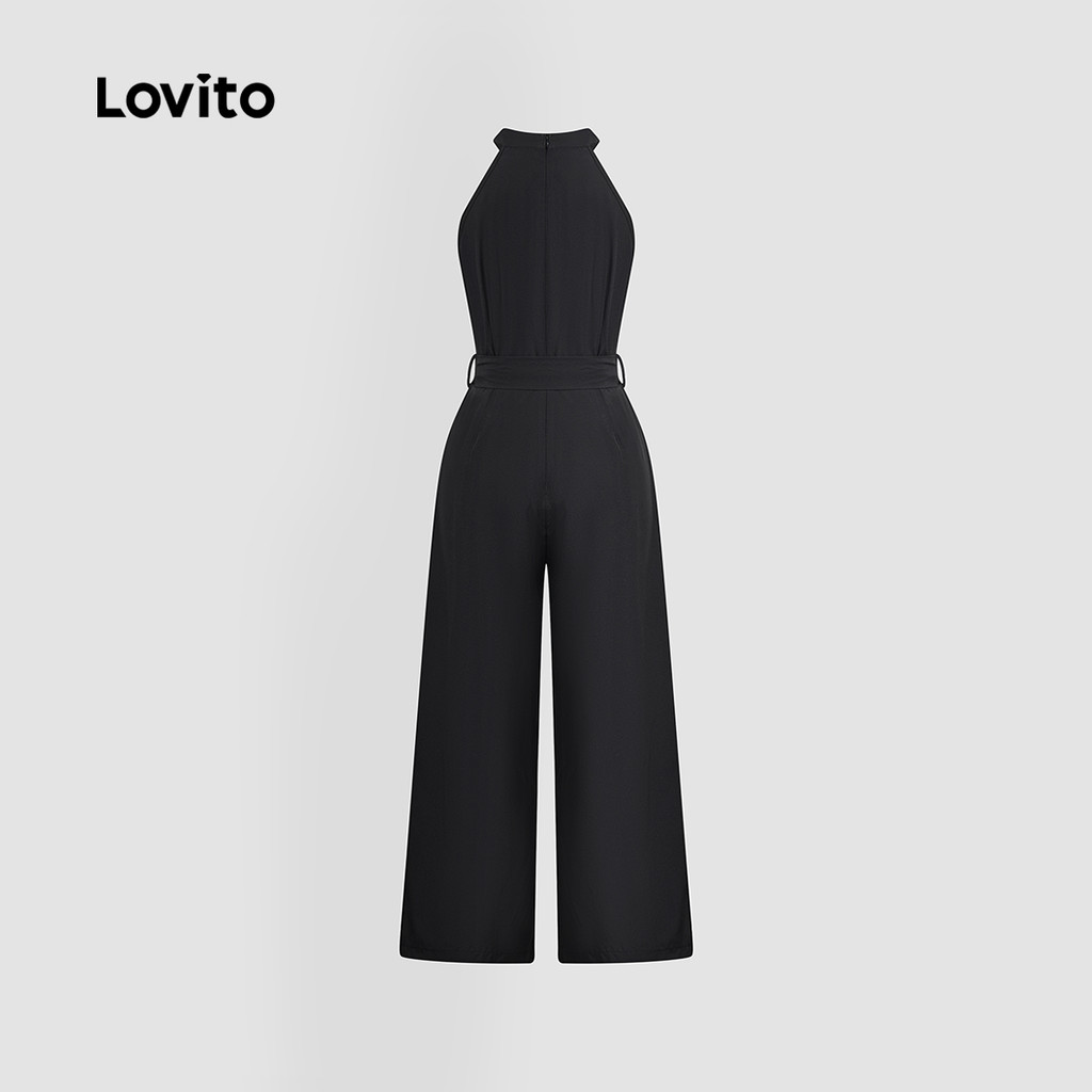 Lovito Macacão Casual com Cinto Recortes Primavera/verão Preto para mulheres L143ED031
