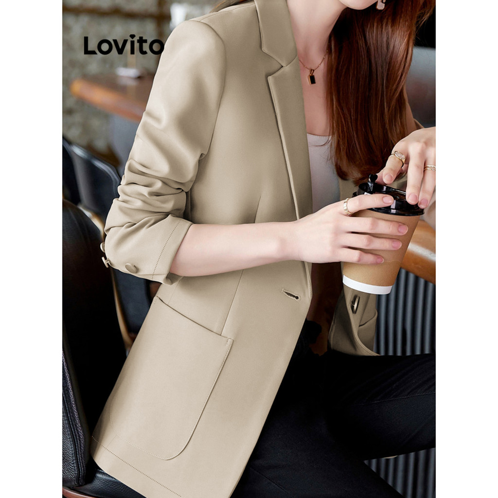 Lovito Blazer Feminino com Botão e Frente Lisa em Cores Sortidas LNE21205