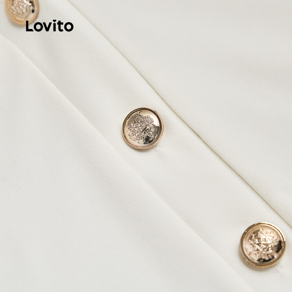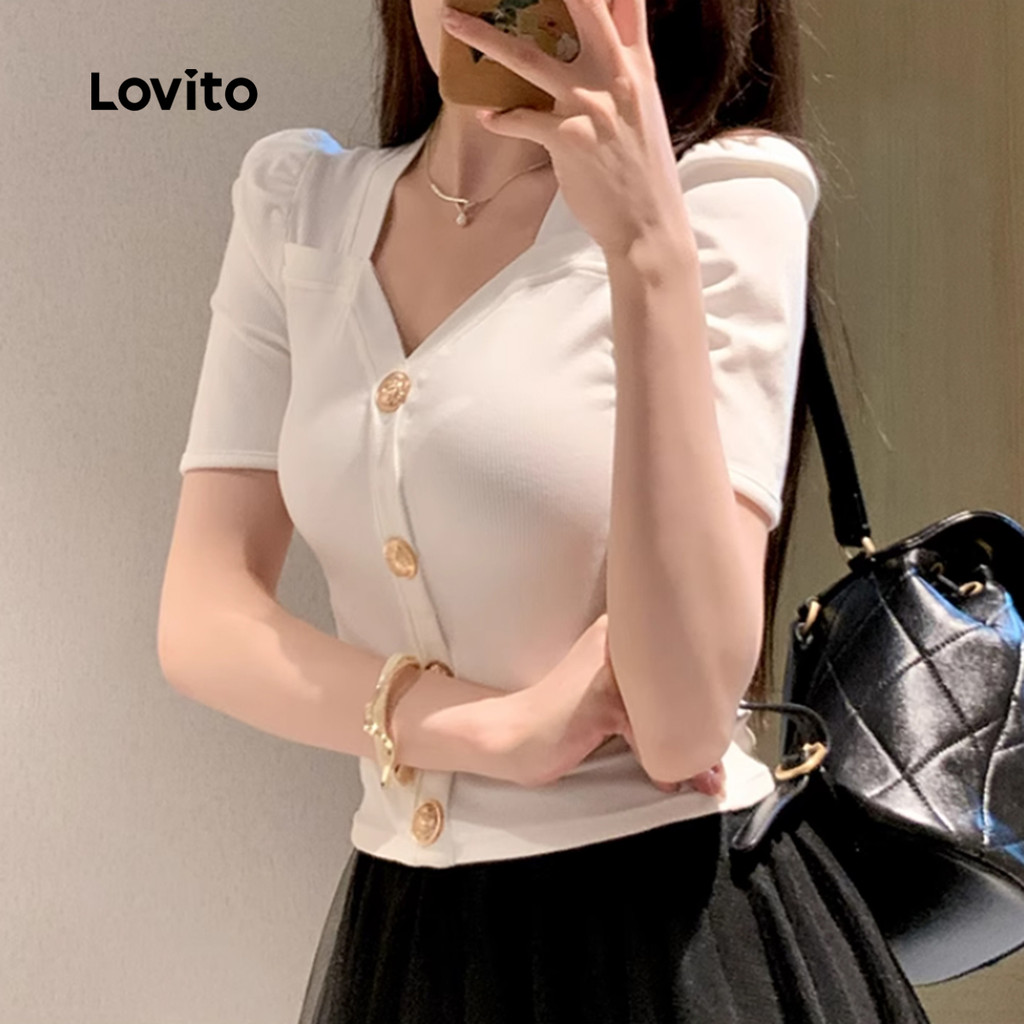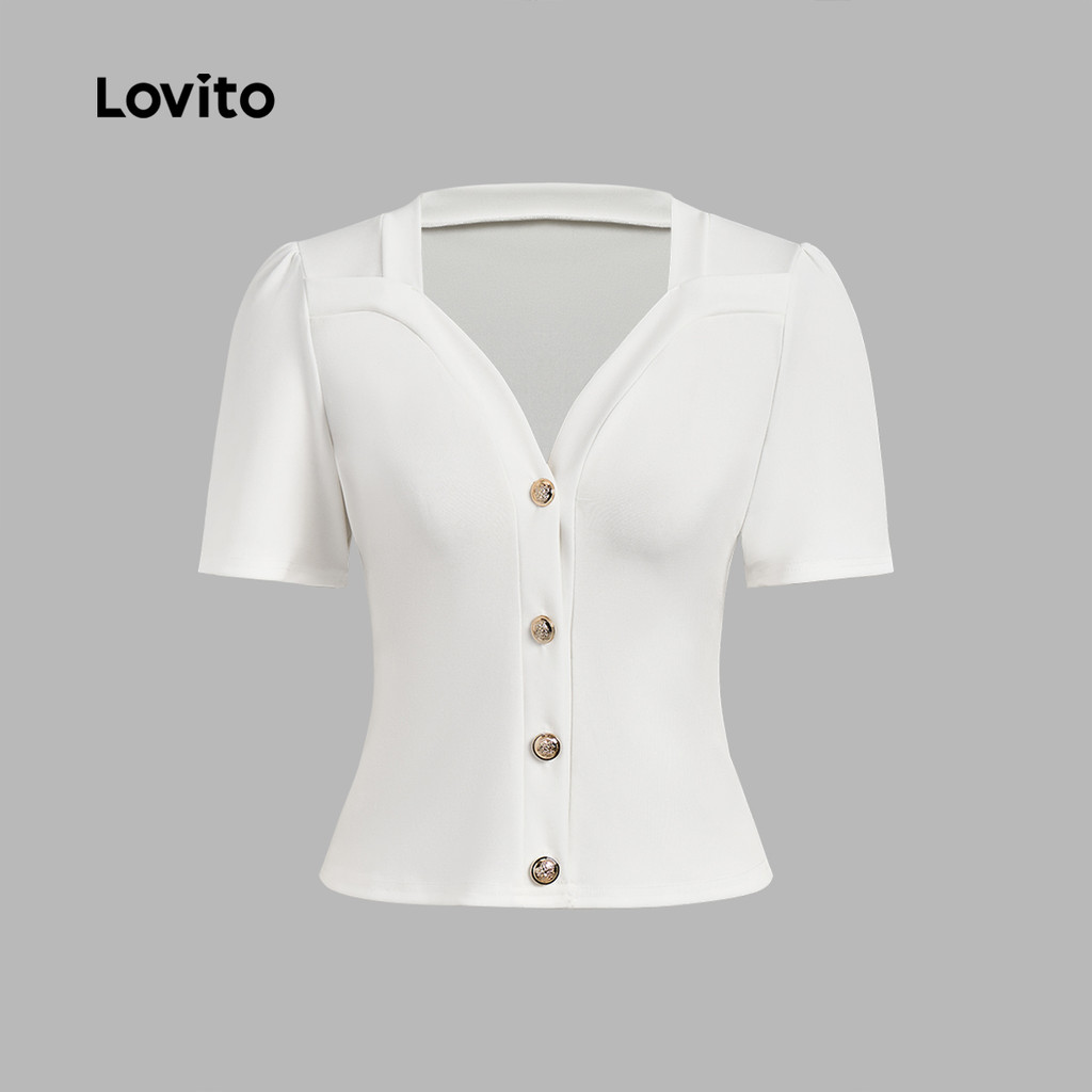 Lovito Camiseta Elegante Com Botão Frontal Requintada Primavera/Verão Camiseta Branca Para Mulheres L135ED087