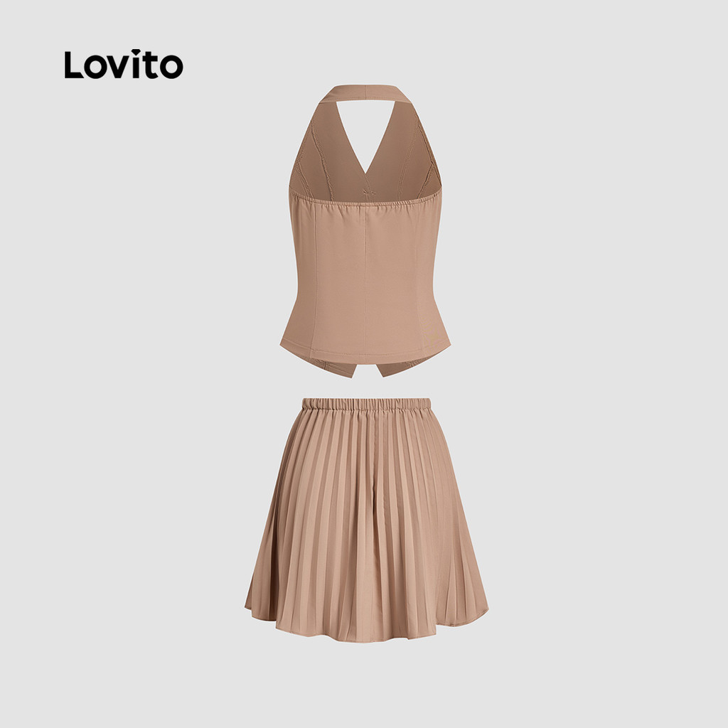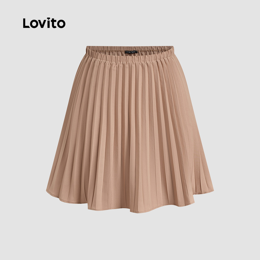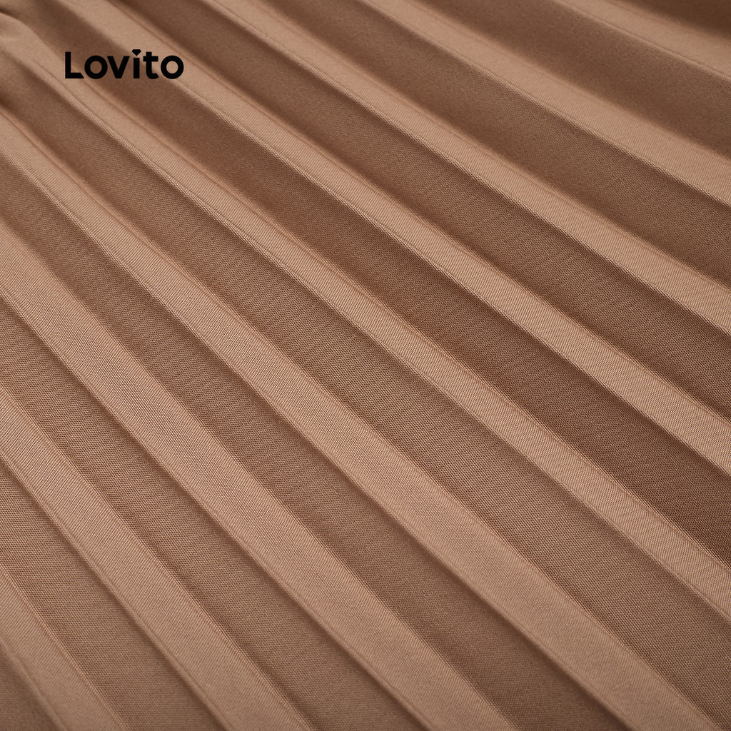 Lovito Conjuntos de Saia Casual com Pregas Botões Primavera/verão Conjuntos de Saia cáqui L137ED059