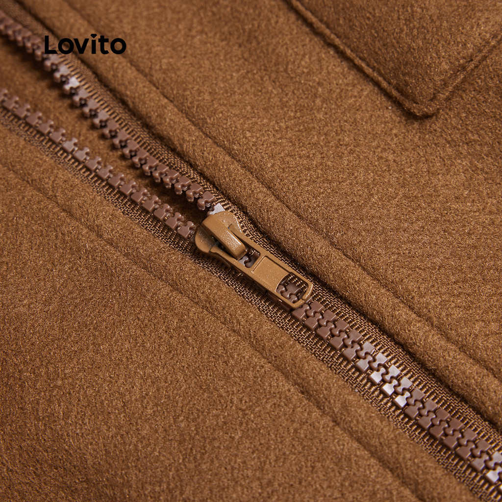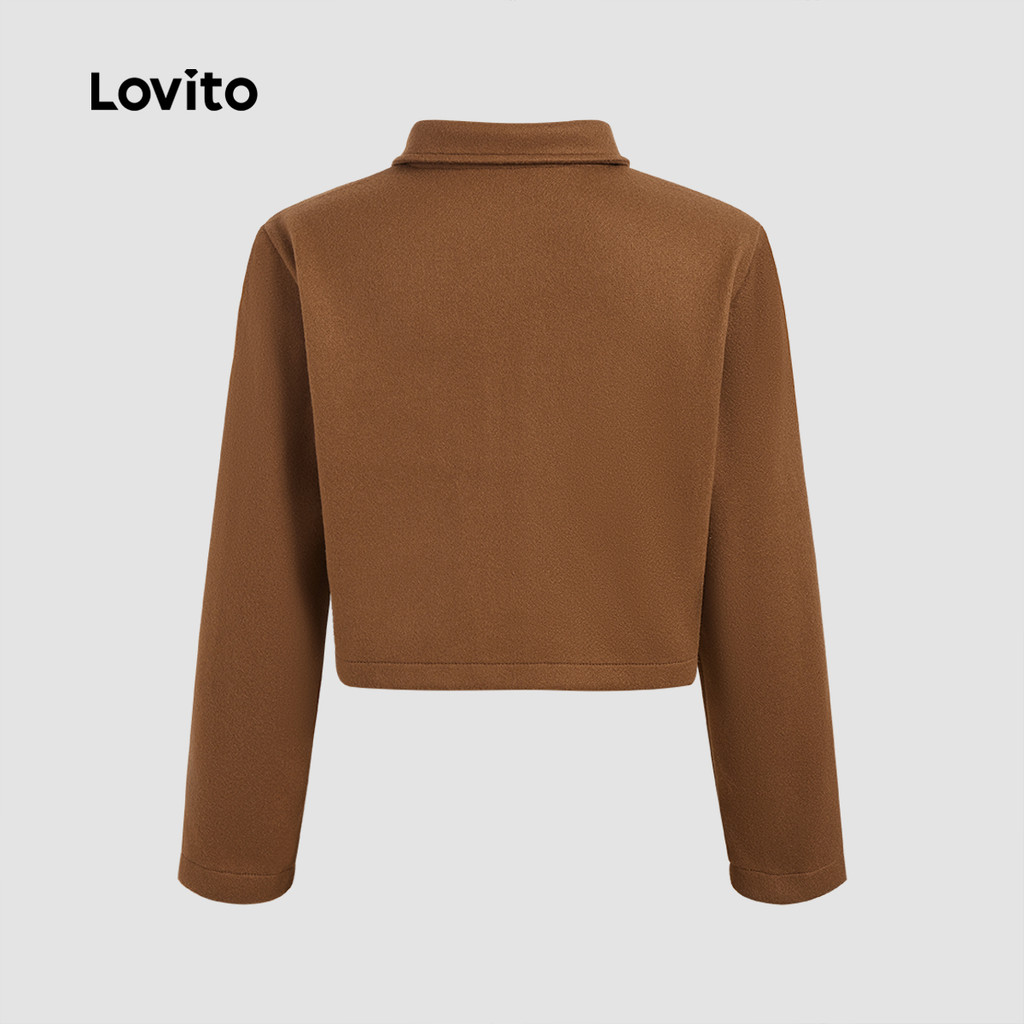 (Trendy) Lovito Jaqueta Casual De Bolso Falso Com Zíper Liso Para Mulheres LBL24450