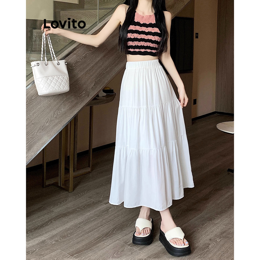 (Trendy) Lovito Saias Fofas Com Bainha Lisa E Babados Para Mulheres LNA30087 (White)
