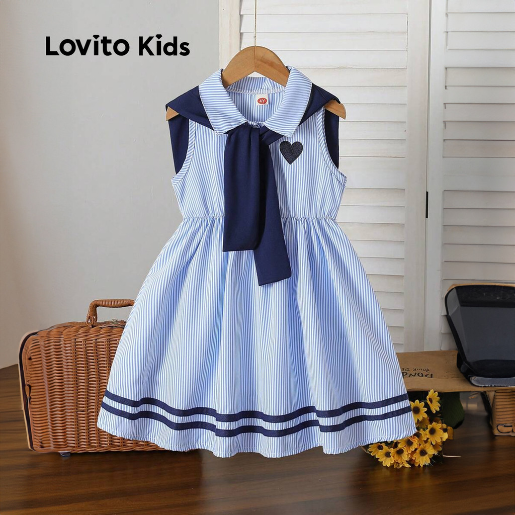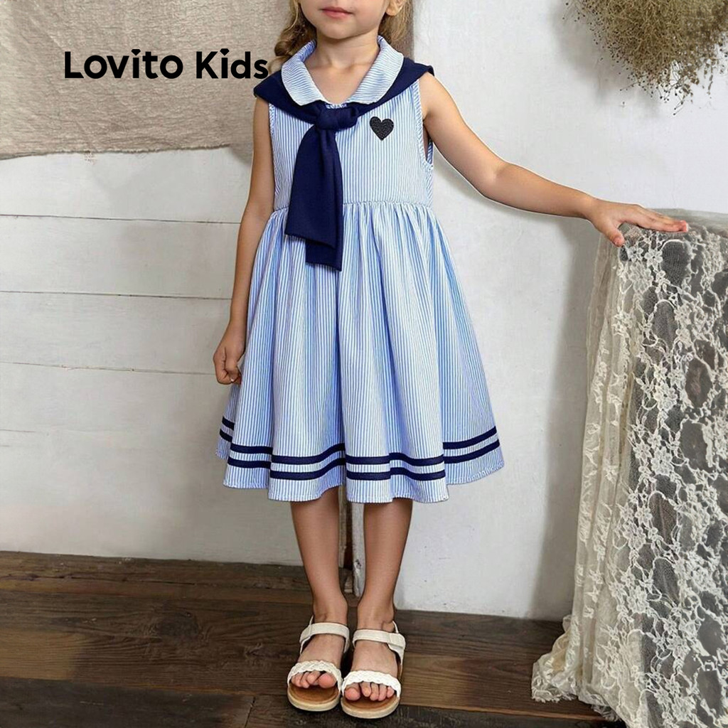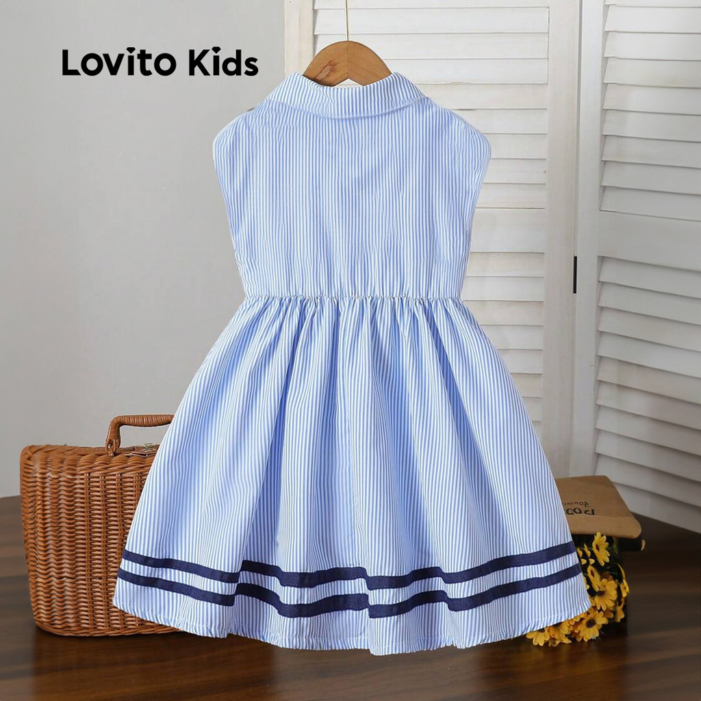 Lovito Kids Vestido Fofo de Cor em Bloco Primavera/verão Azul para menina L160LD194\2