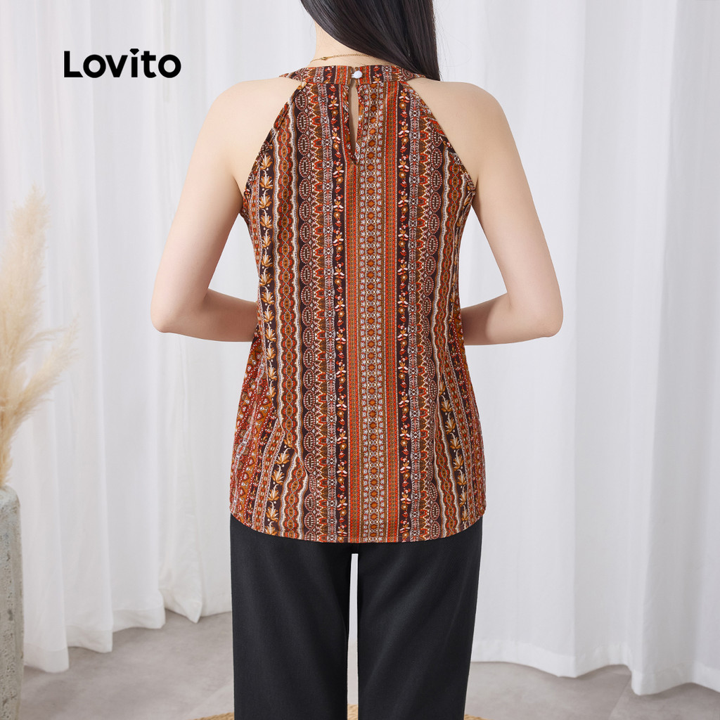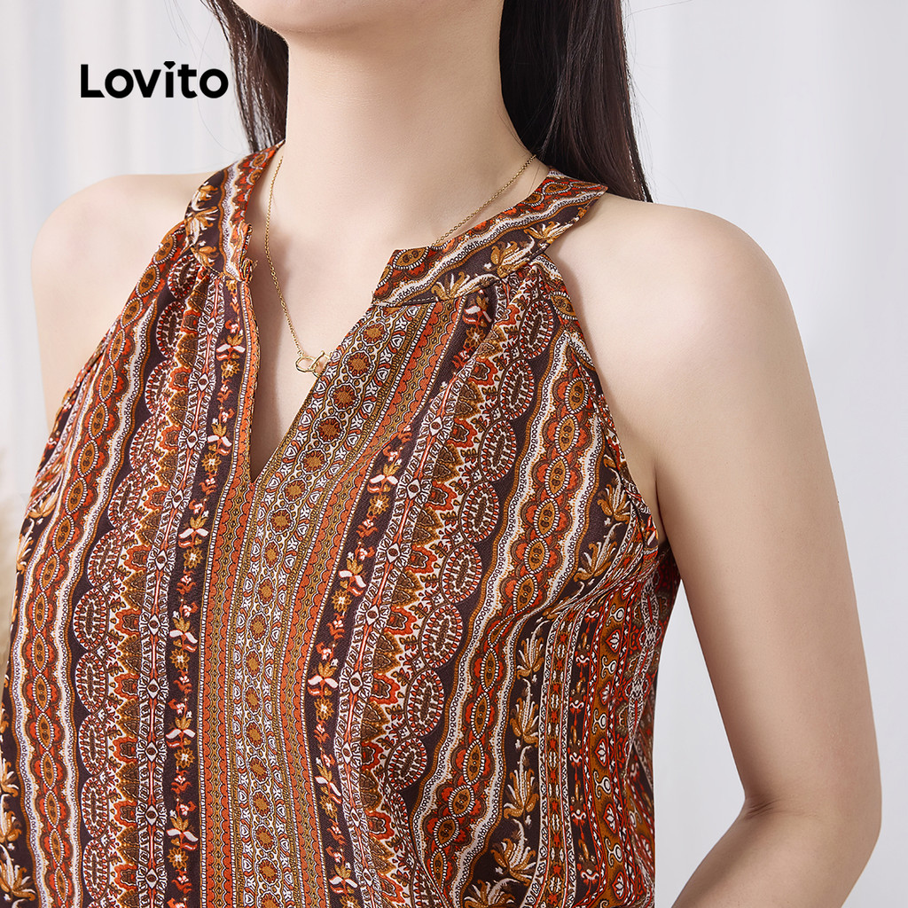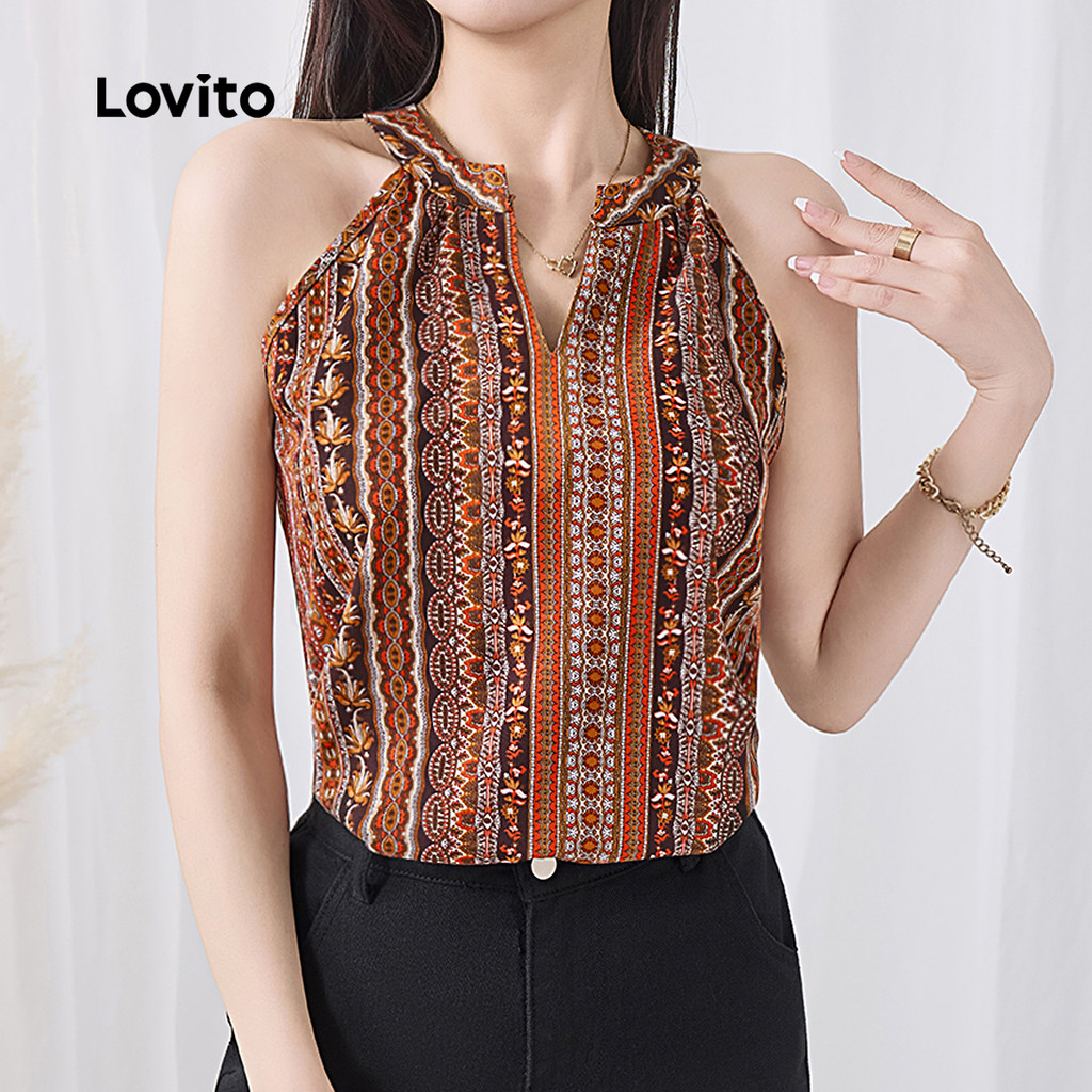 Lovito Regata Boho Com Estampa Tribal E Babados Para Mulheres L133ED992