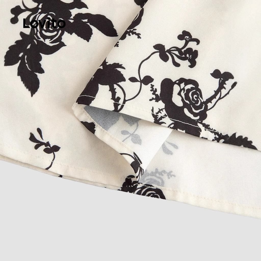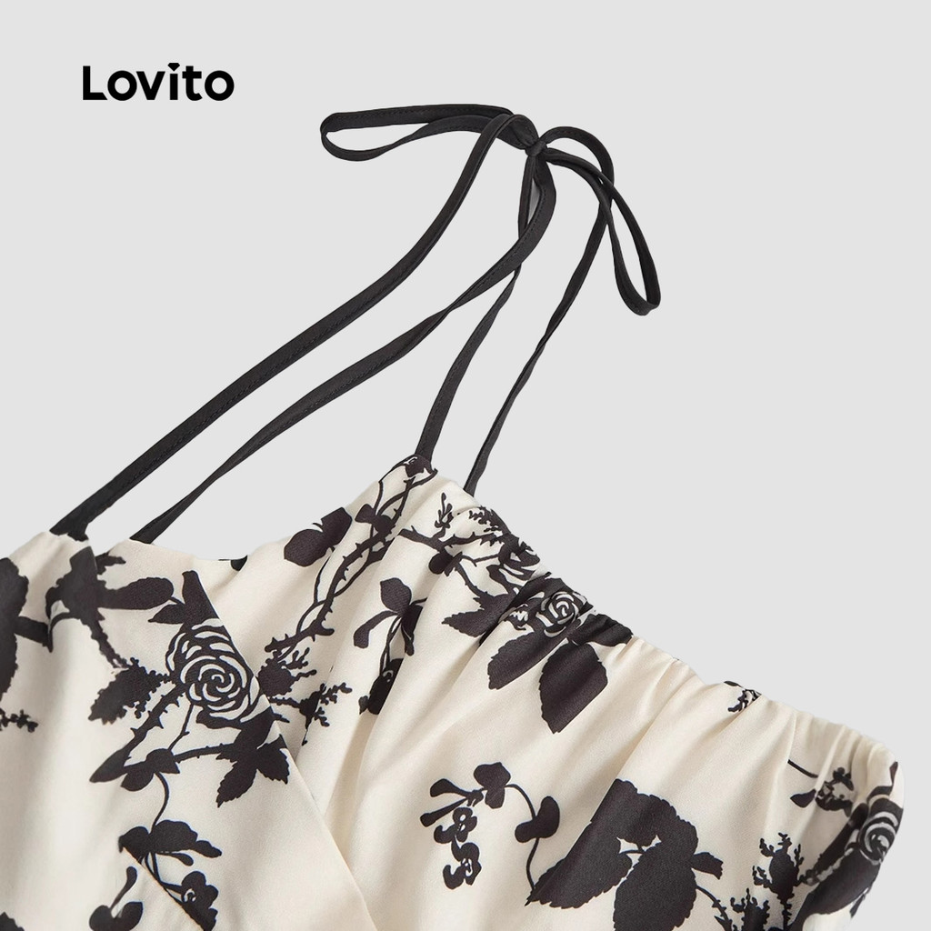 Lovito Vestido Elegante de Renda com Amarração Toque Suave Vestido de Primavera/verão para Mulheres LNL105404