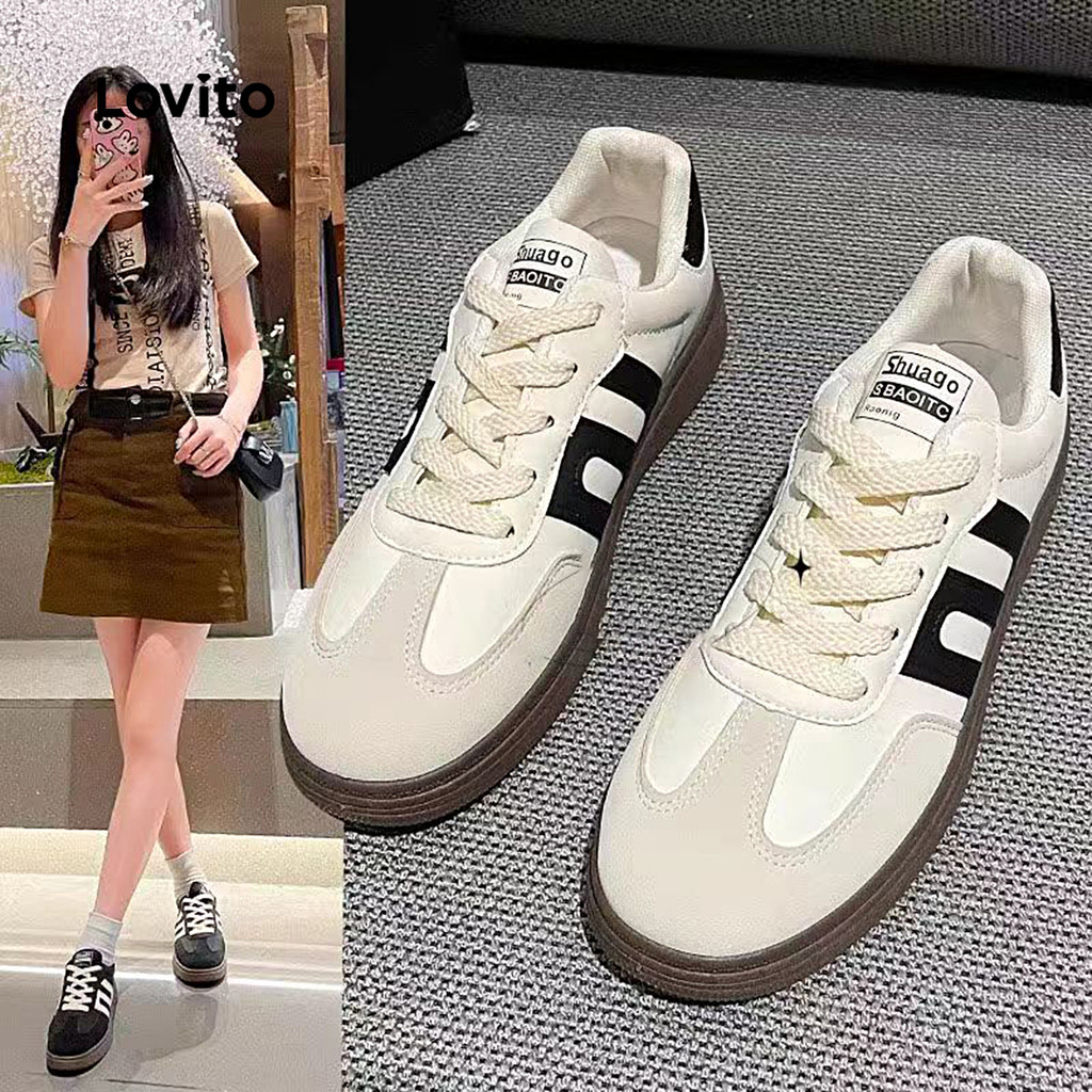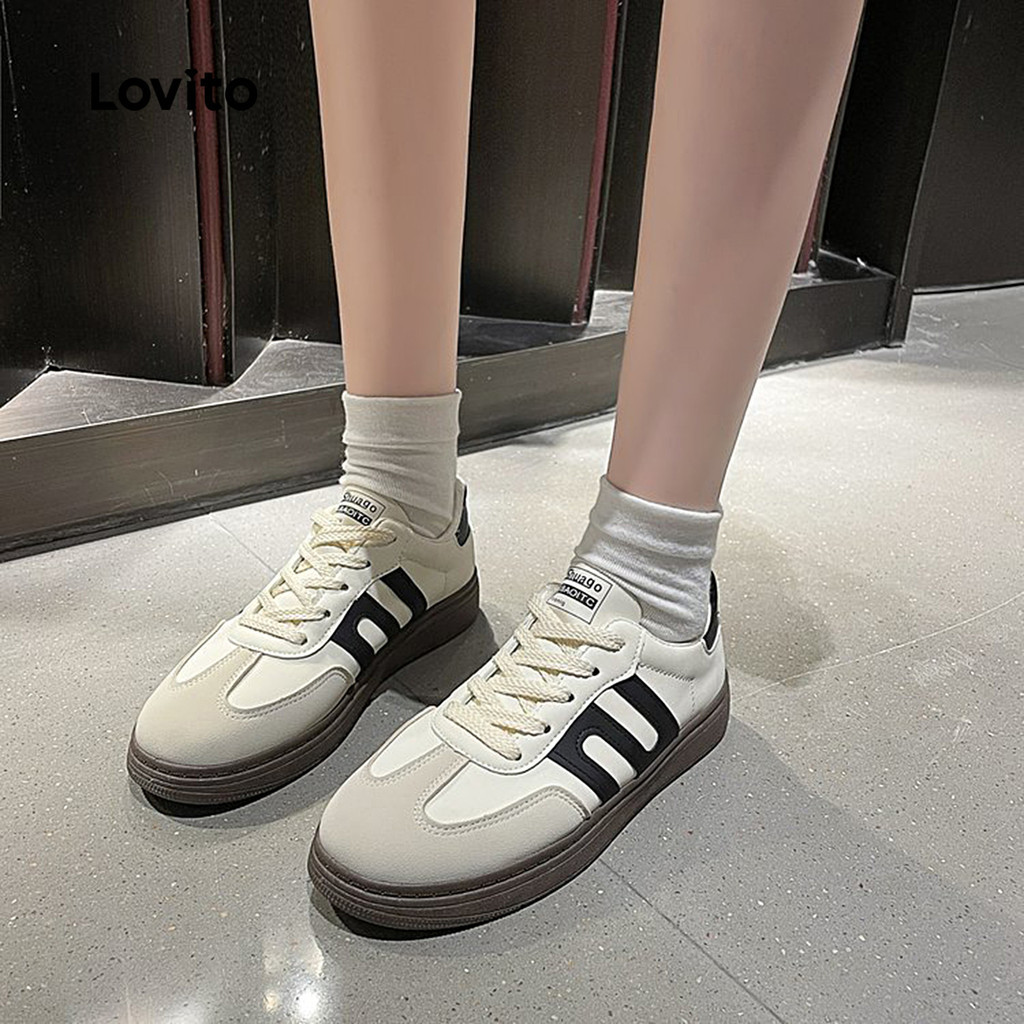 Lovito Tênis Casuais Colorblock Retrô para Todas As Estações Brancos para Mulheres LFA86057
