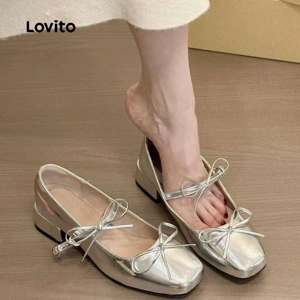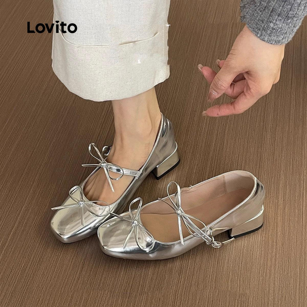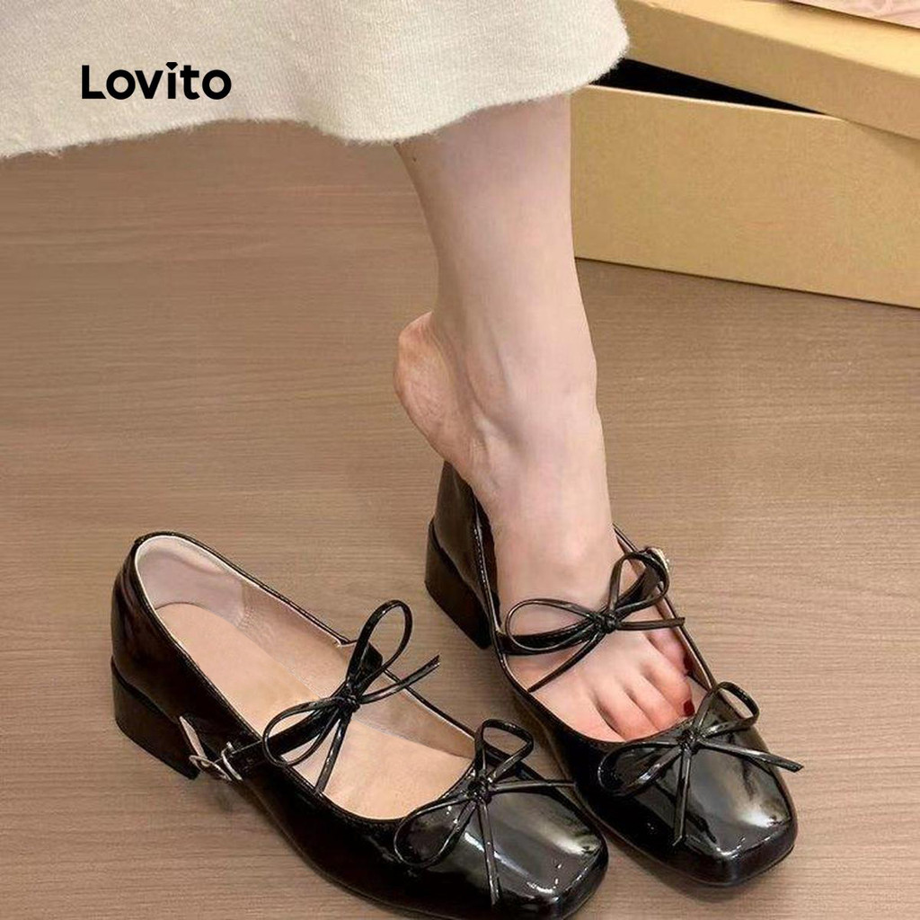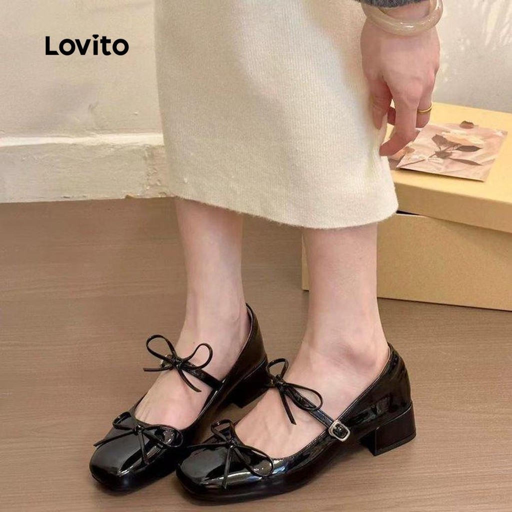 (Trendy) Lovito Elegante laço vermelho liso Mary Jane Vintage sapatilhas botões Mary Jane para mulheres LFA75061