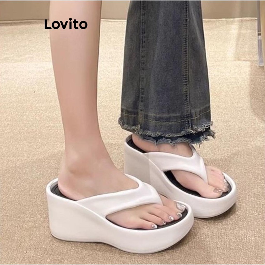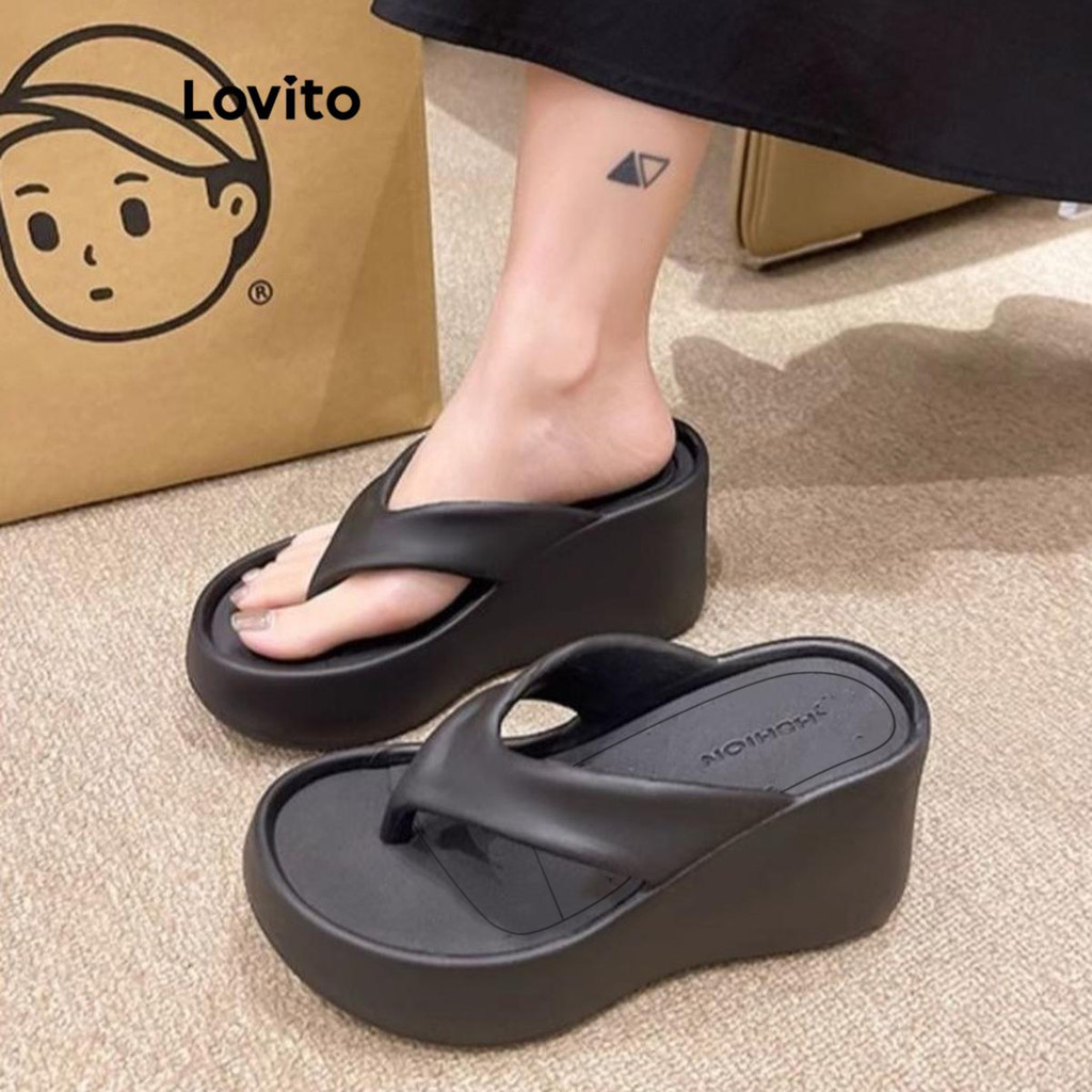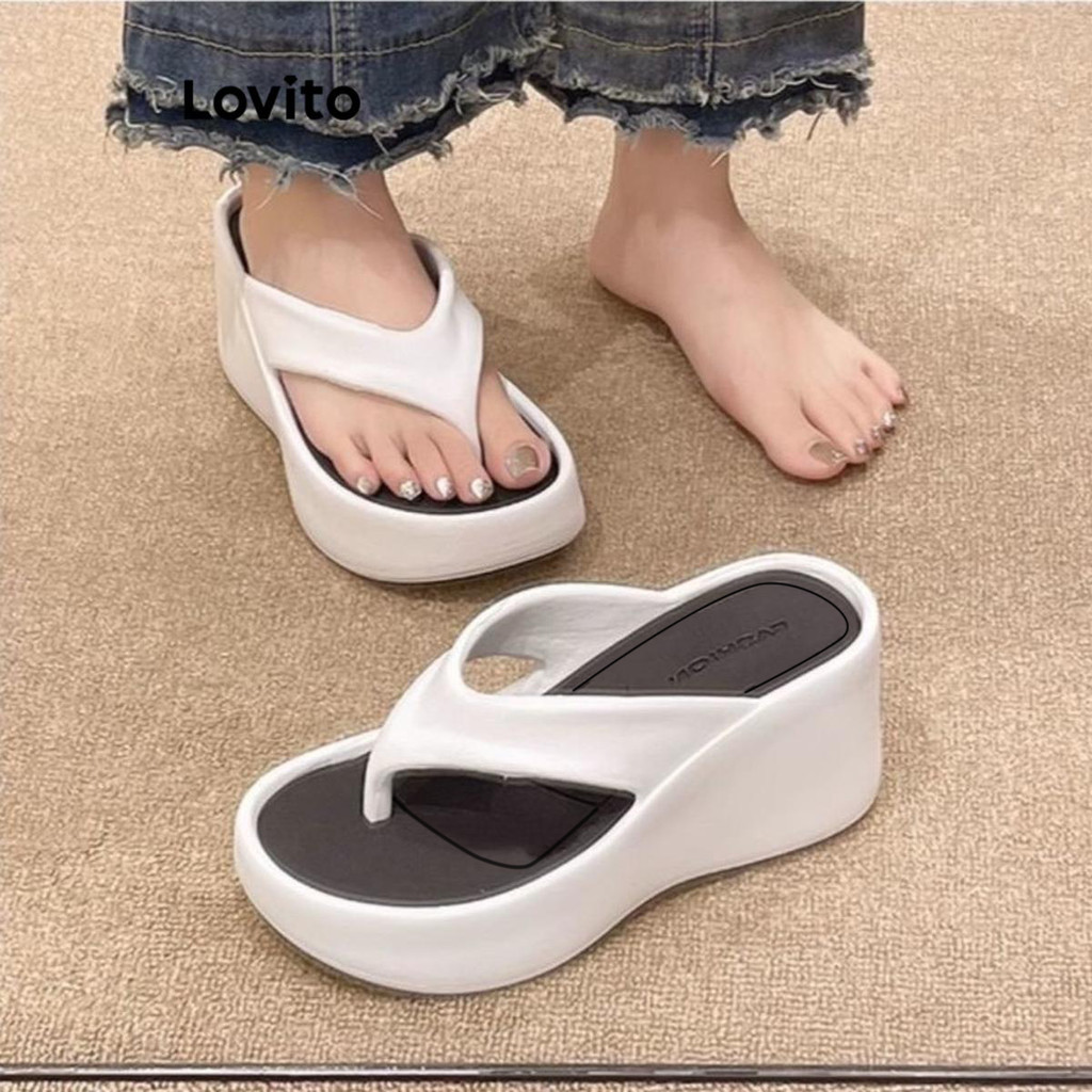 (Trendy) Lovito Casual Flip Flops Moda Cunha Sola Grossa Antiderrapante Usar Fora Sandália Rasa para Mulheres LFA62266