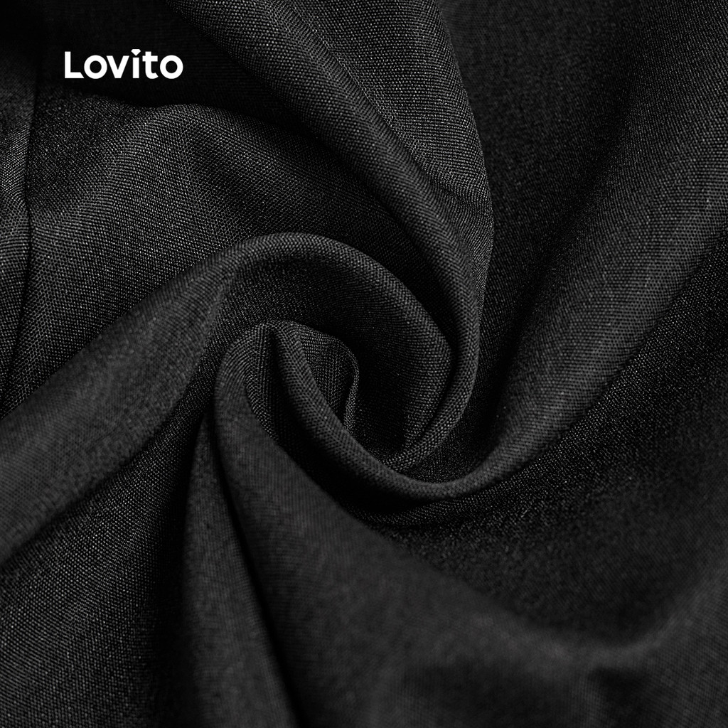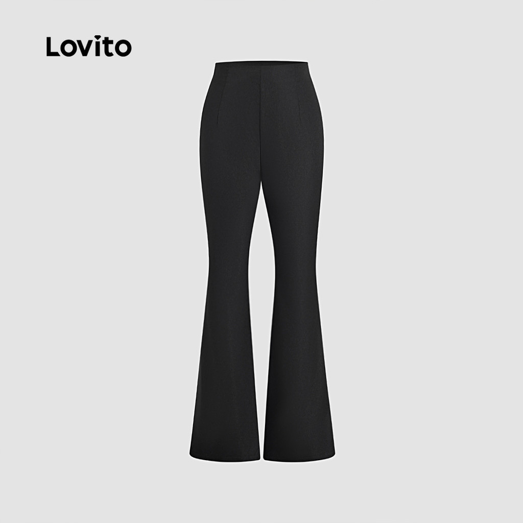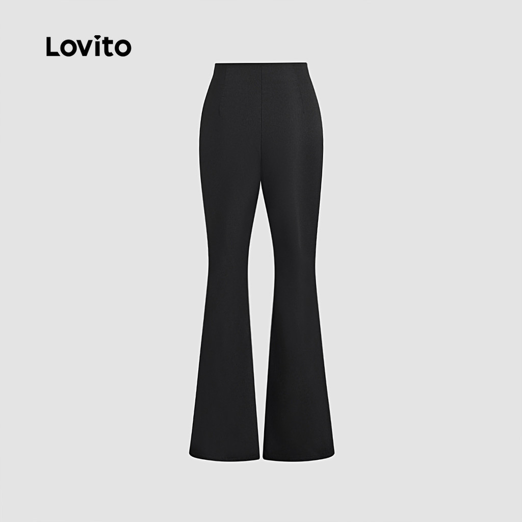 (New) Lovito Calças Elegantes com Zíper Linha Estrutural Todas As Estações Calças Pretas para mulheres L142ED811