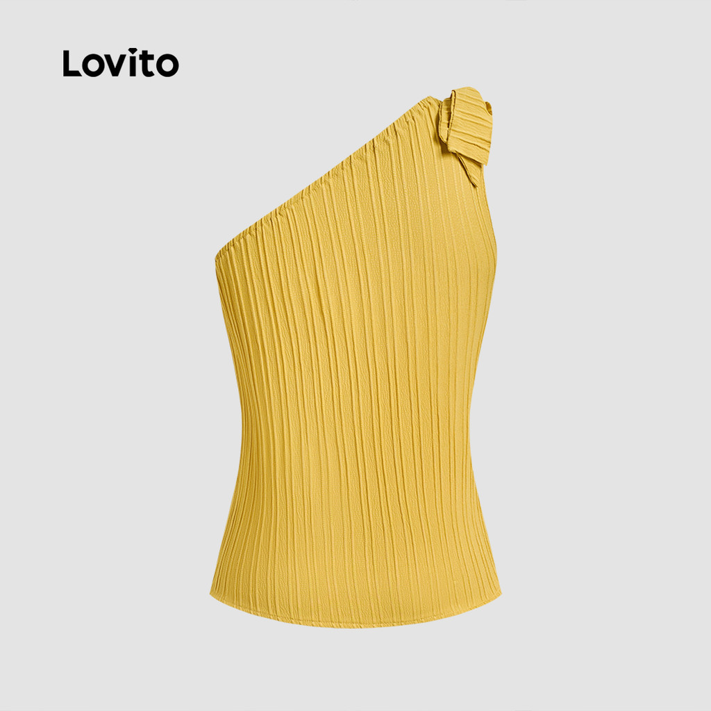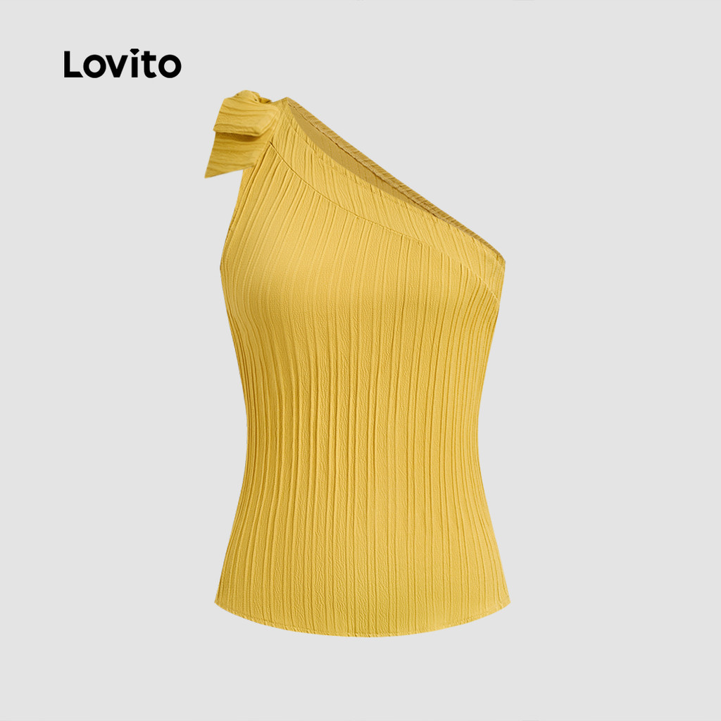 (New) Lovito Blusa Boho Assimétrica com Laço Primavera/verão Amarela para Mulheres L142ED275