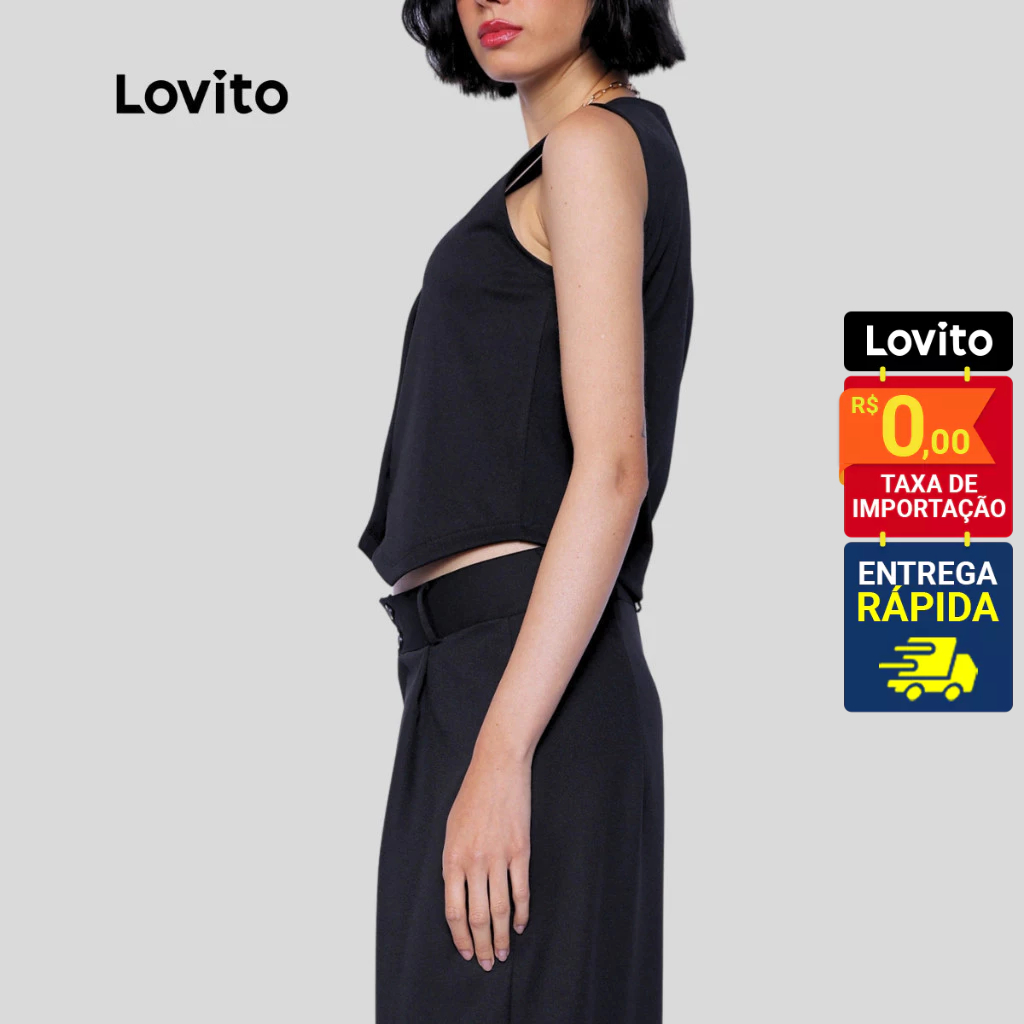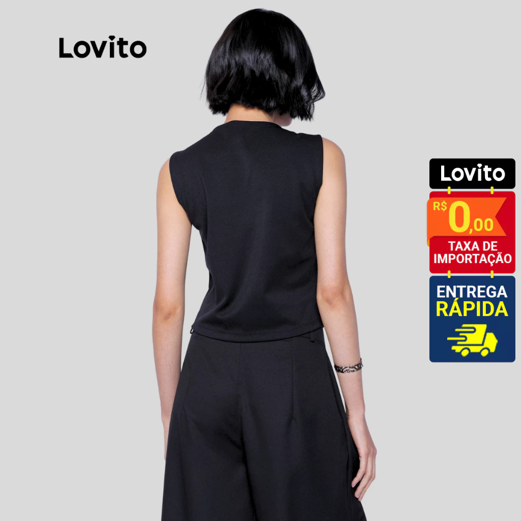 Lovito Colete Alfaiataria Elegante Preto com Botões Feminina LB790BRL820
