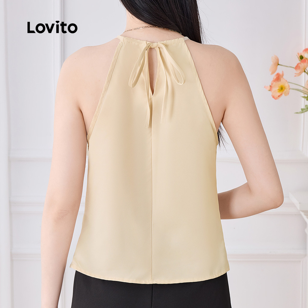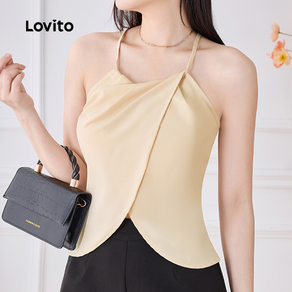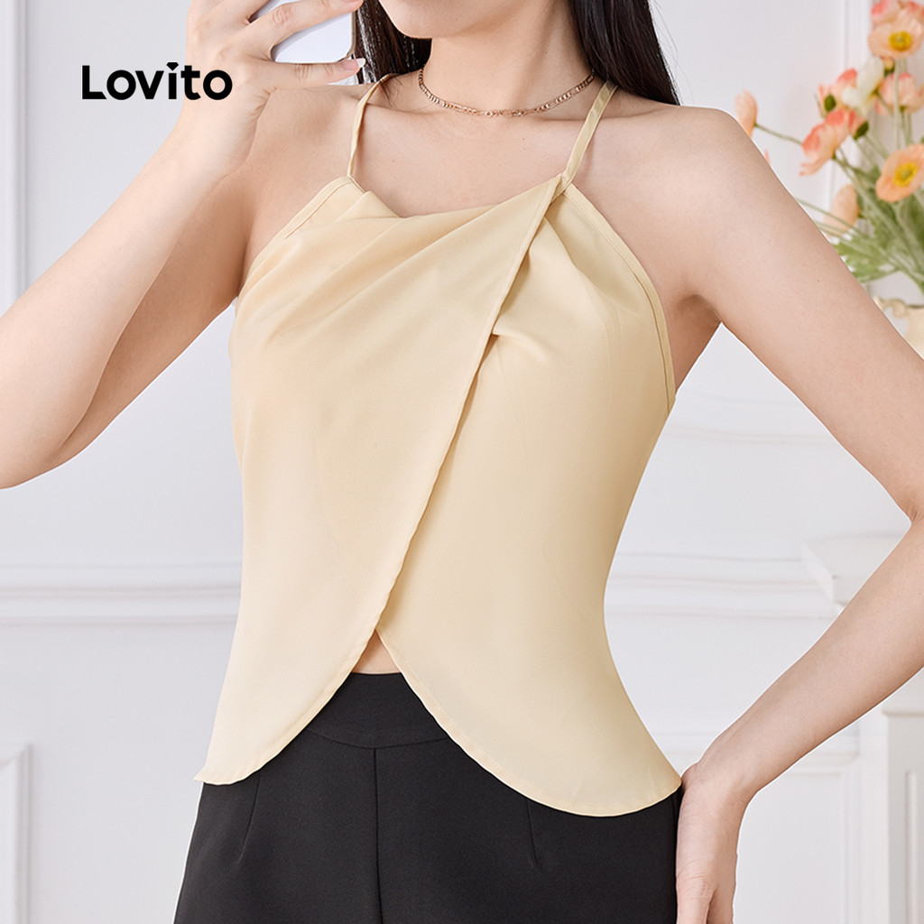 Lovito Blusa Elegante com Gola em V Na Frente Estilo Casual e Confortável para Primavera/verão em Caqui L138AD907