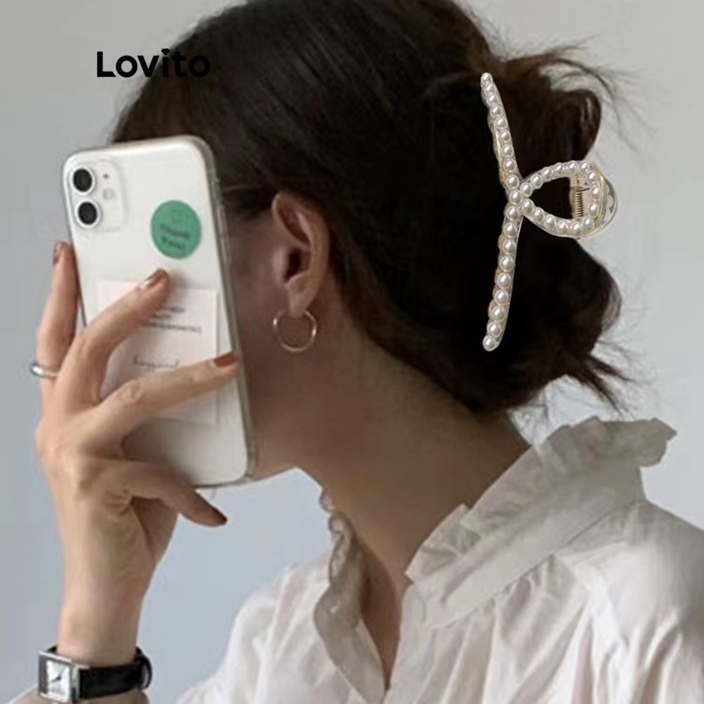 (Trendy) Lovito Casual Presilha de Cabelo Feminina Lisa de Pérolas LNA14099 (Branca)