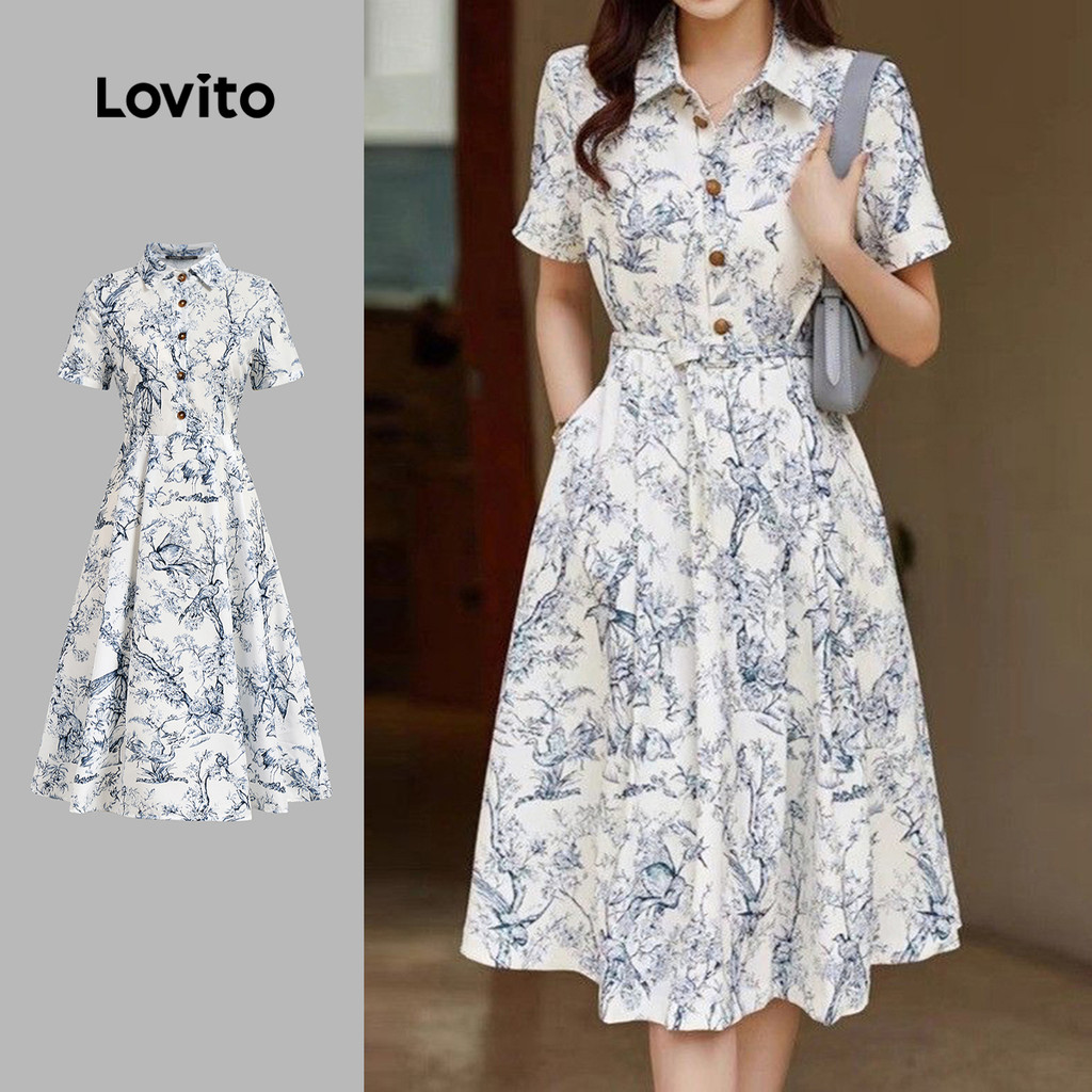 (Trendy) Lovito Vestido Casual Com Estampa De Botão Primavera/Verão Vestido Multicolorido Para Mulheres L135ED364