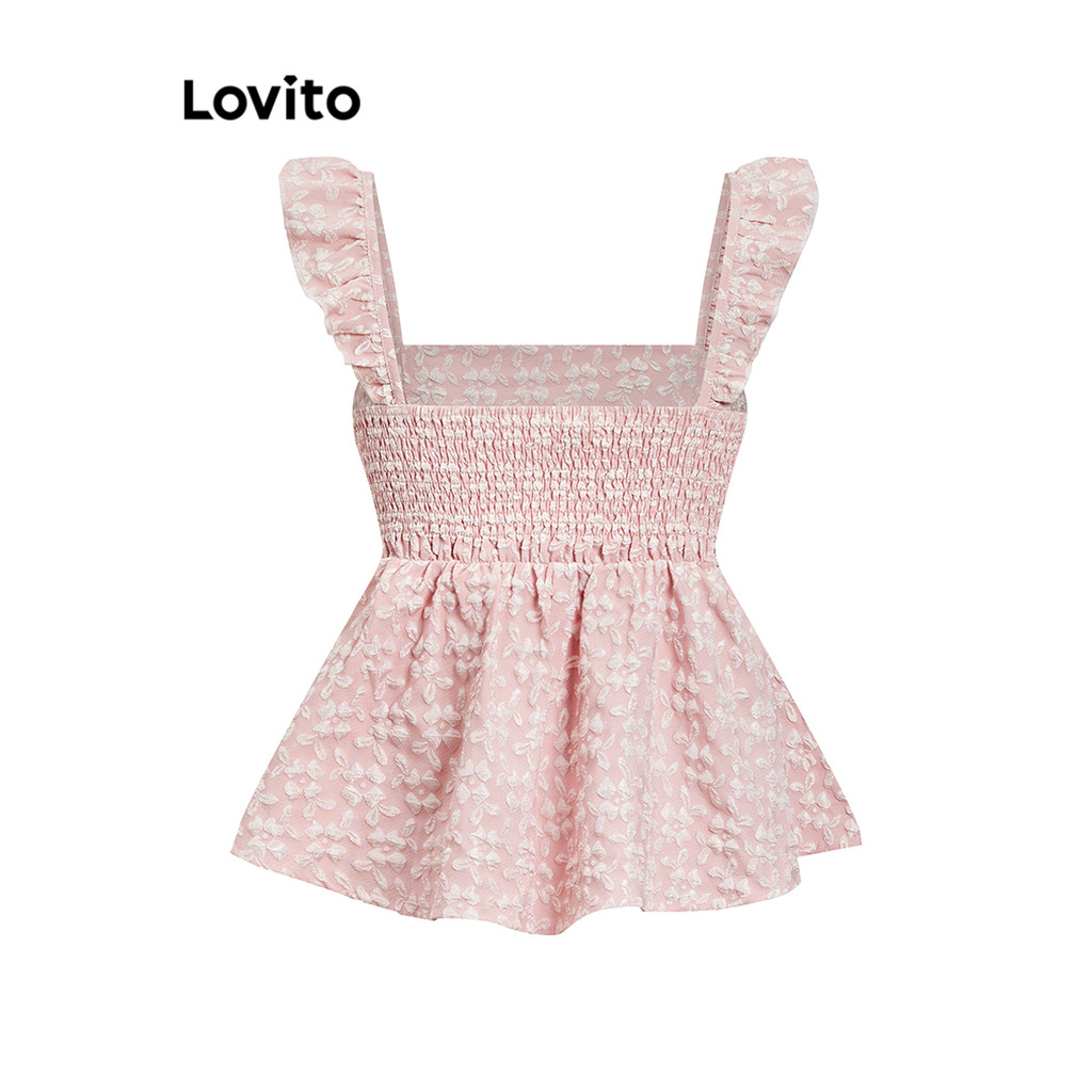 Lovito Regata Feminina em Jacquard com Babados para Verão, Estilo Casual, Ref. L109MD587