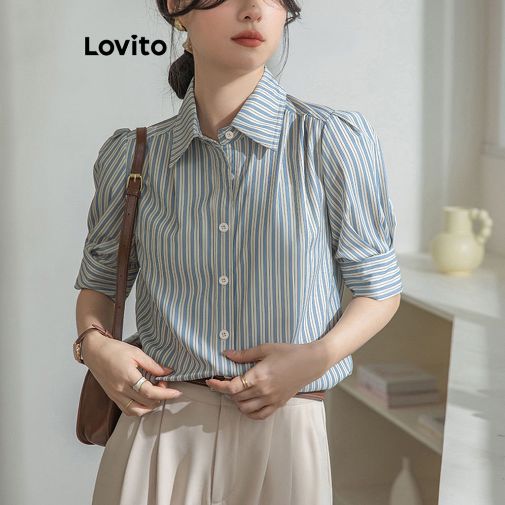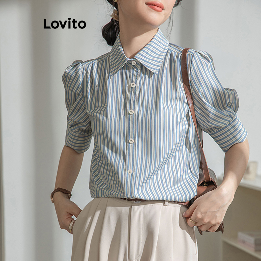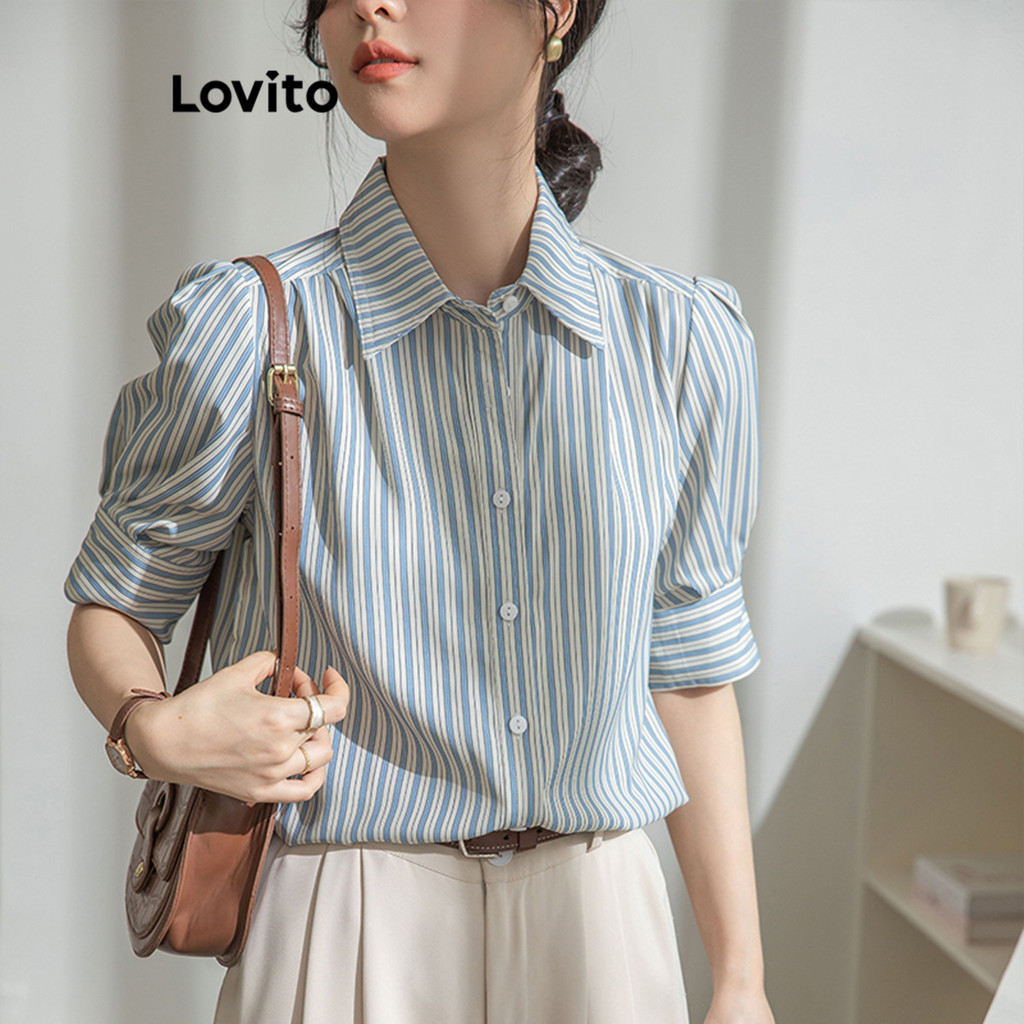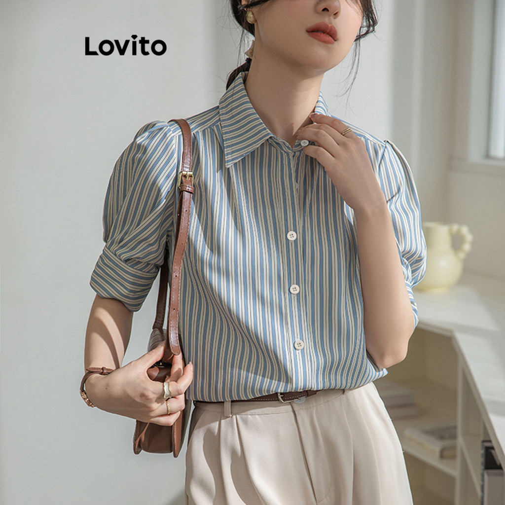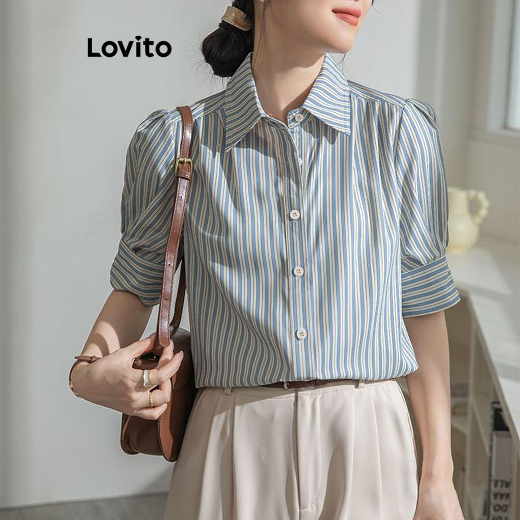 (Trendy2) Lovito Blusa Casual Listrada Com Listras Laterais Para Mulheres LNE62368