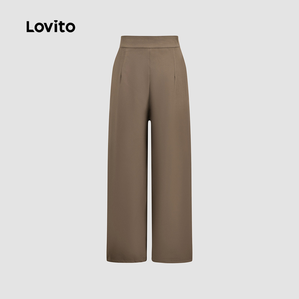 Lovito Calça Casual com Amarração Primavera/verão Marrom para Mulheres L164ED249