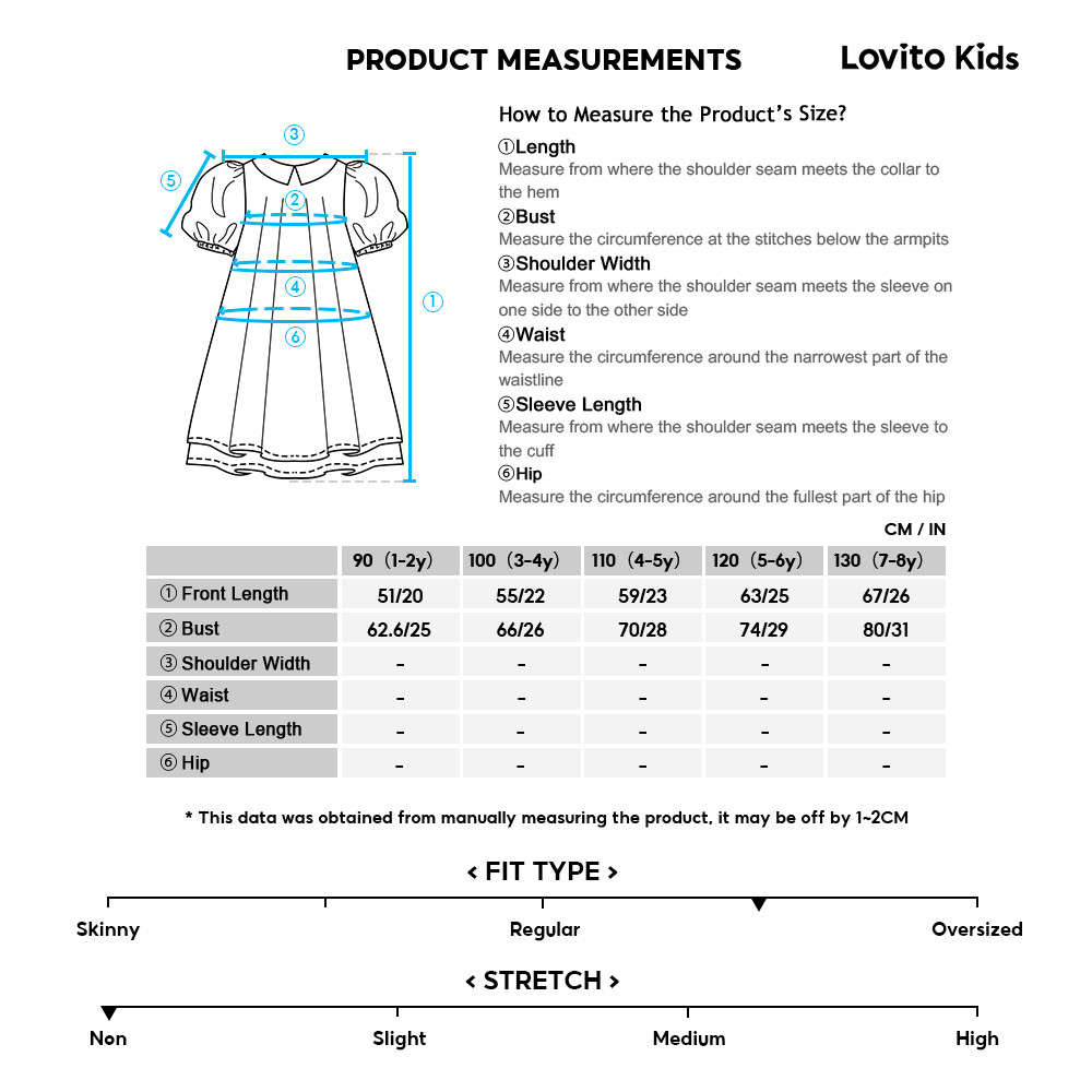 Lovito Kids Vestido Fofo com Botões Na Frente Assimétrico Macio Ao Toque para Todas As Estações azul LNL111214\6