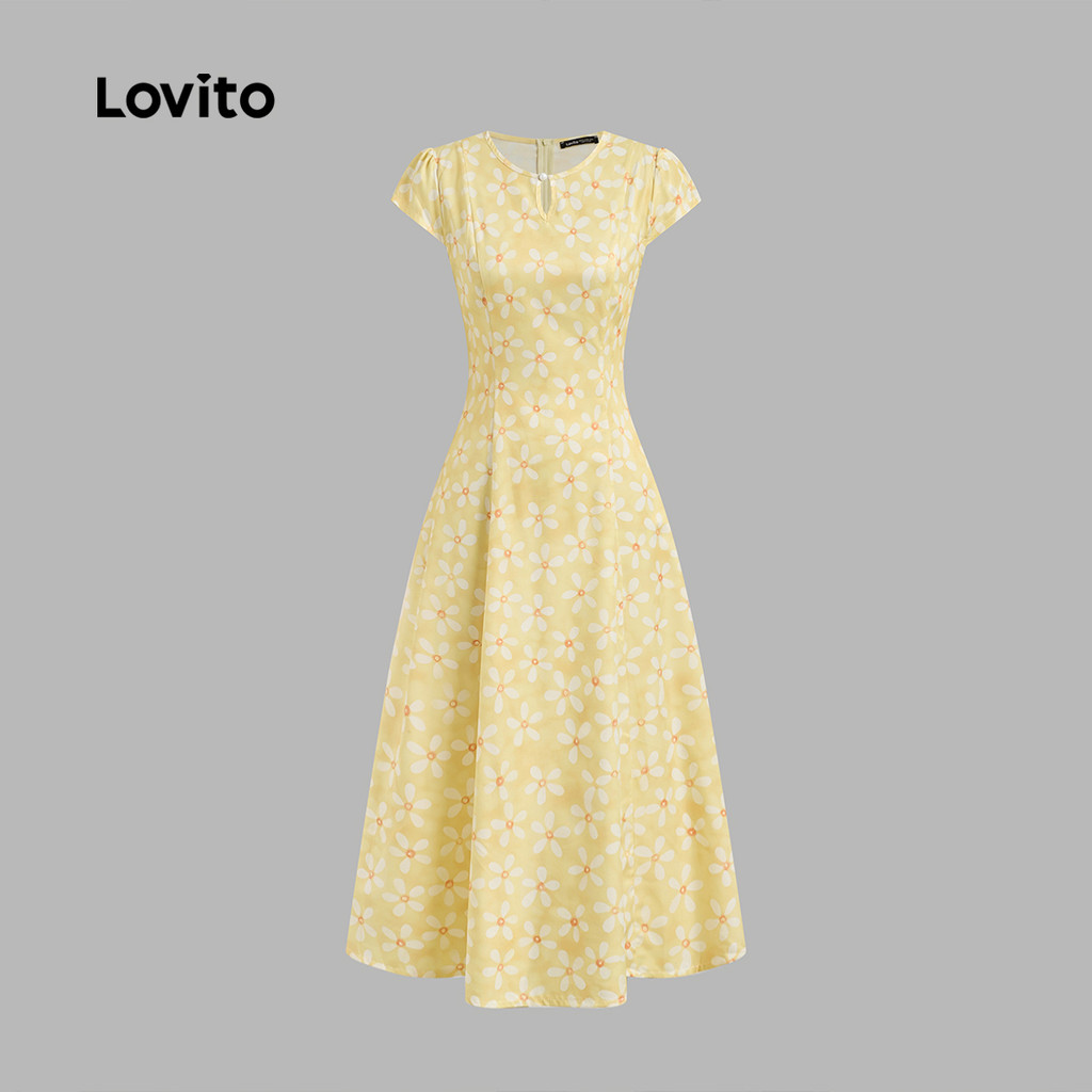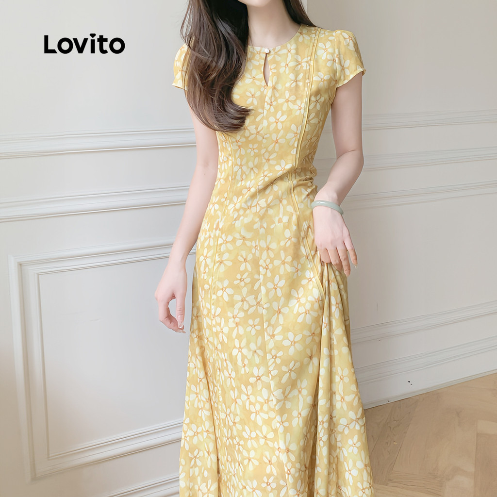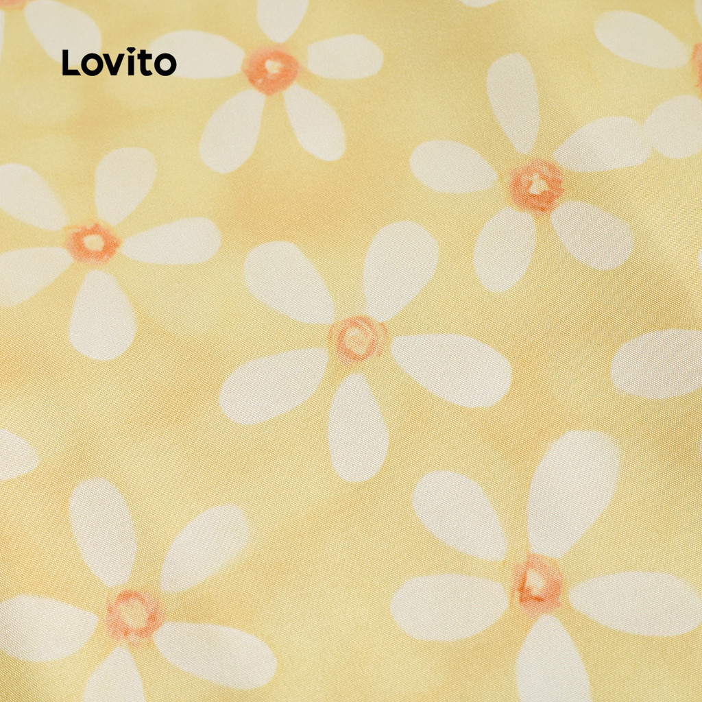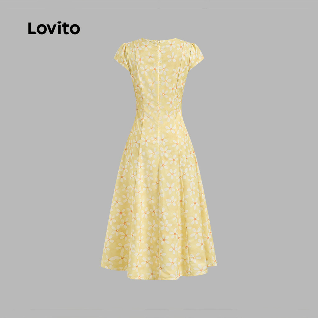 Lovito Refine Vestido Plissado Boho Primavera/Verão Amarelo Feminino L142ED048