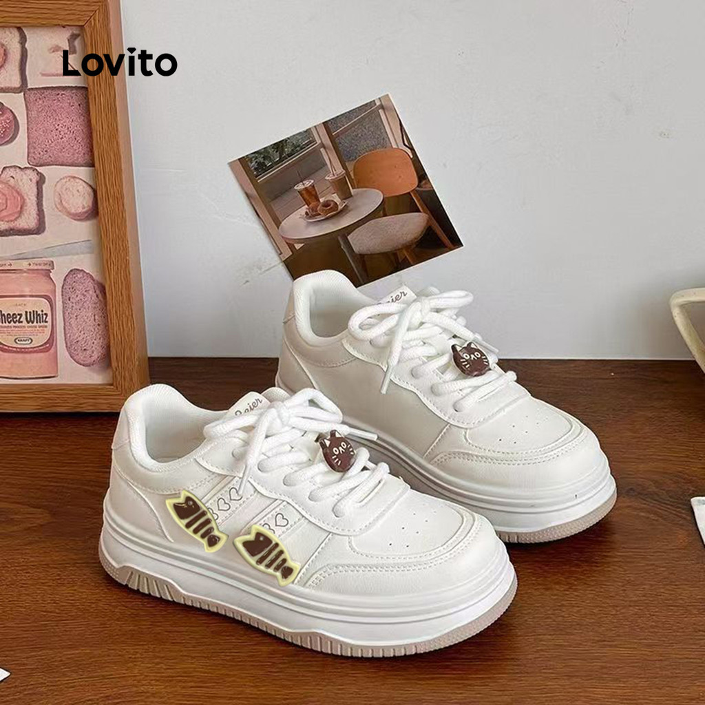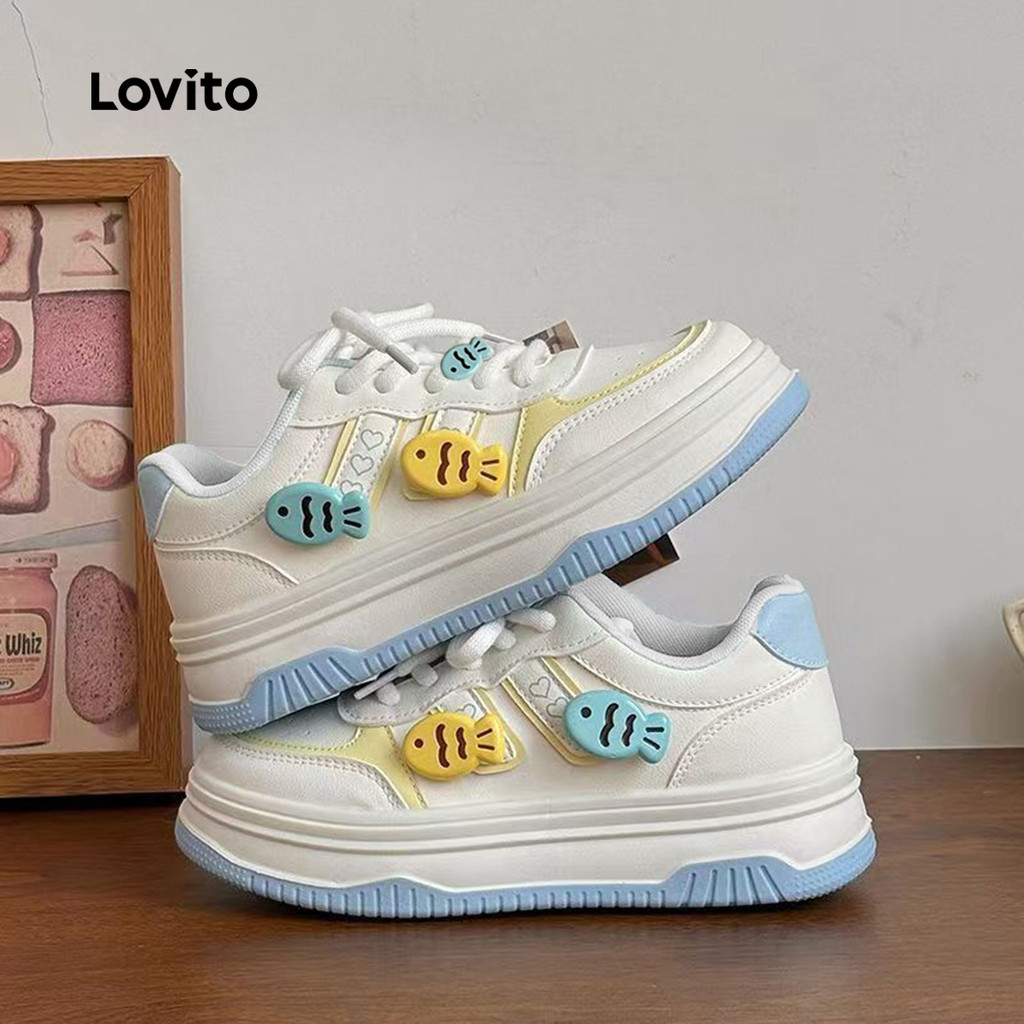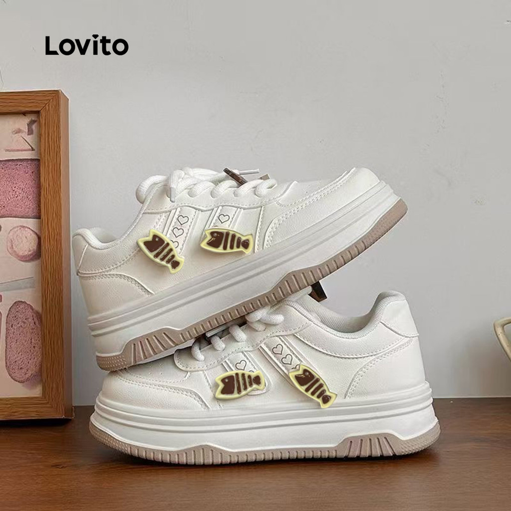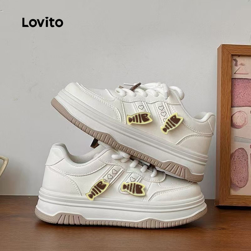 Lovito Esporte simples bonito peixe pequeno elegante e versátil único pão sapatos sola grossa tênis para mulher LFA76332