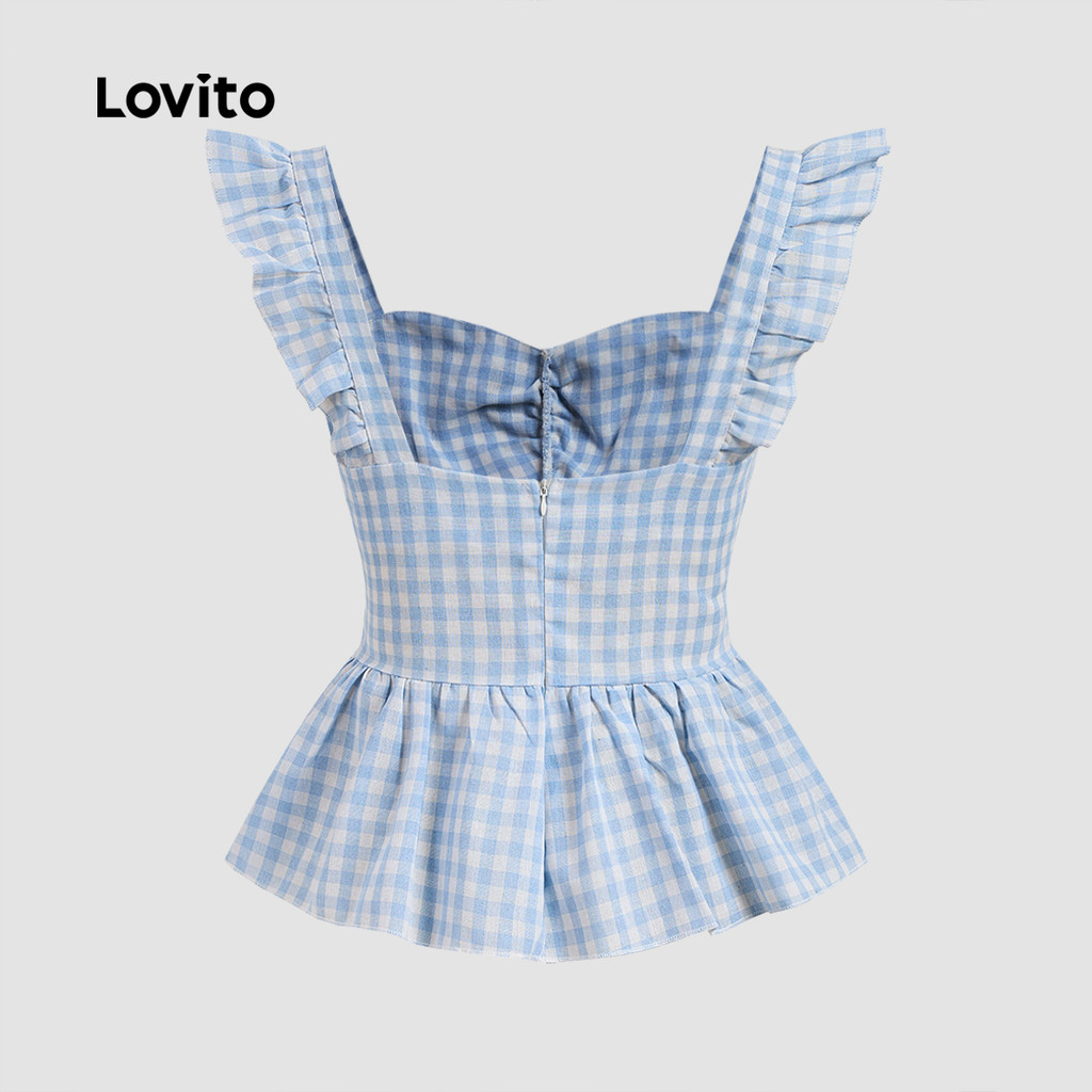 Lovito Blusa Casual com babados e laço Gingham para mulheres L133AD505