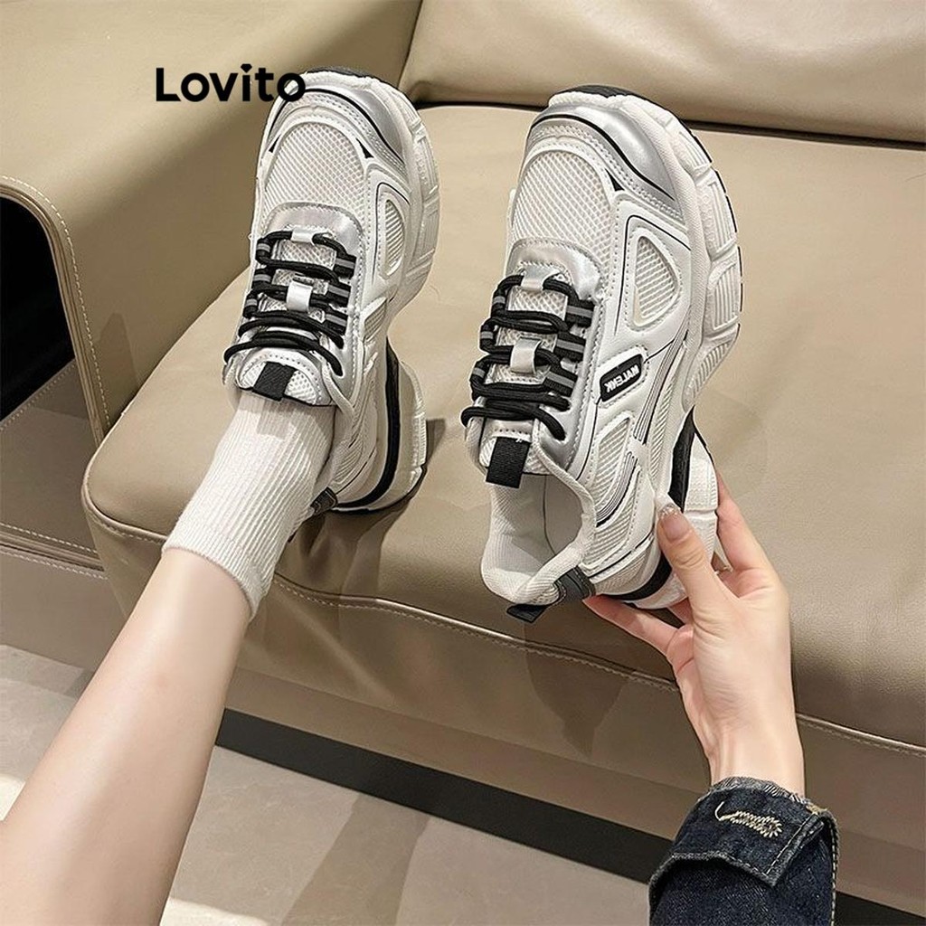 (Trendy) Lovito Esporte simples na moda pai sapatos cores contrastantes tênis para mulher LFA74267