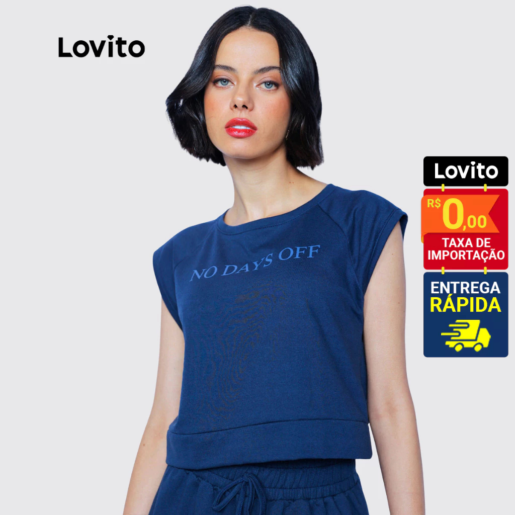 Lovito Regata Moletinho com Estampa de Letras Casual Feminina LB880BRL910
