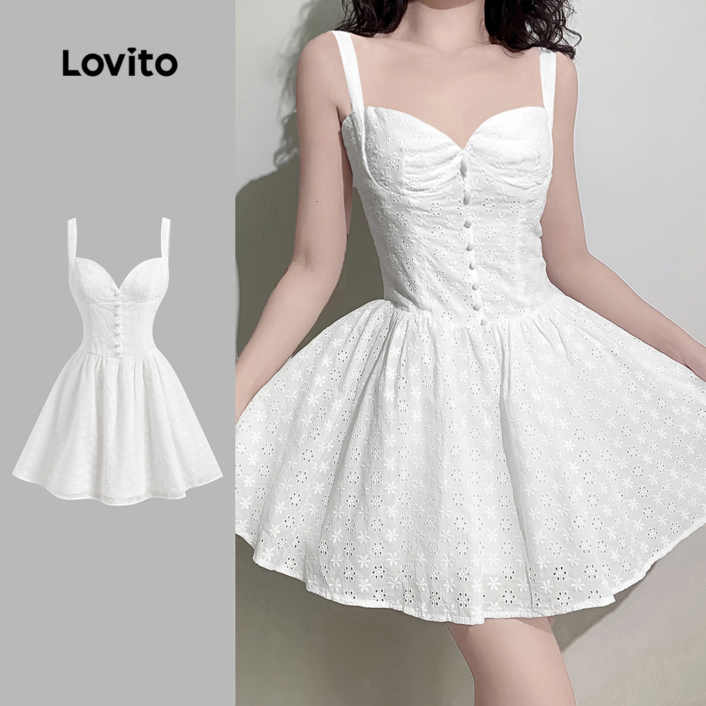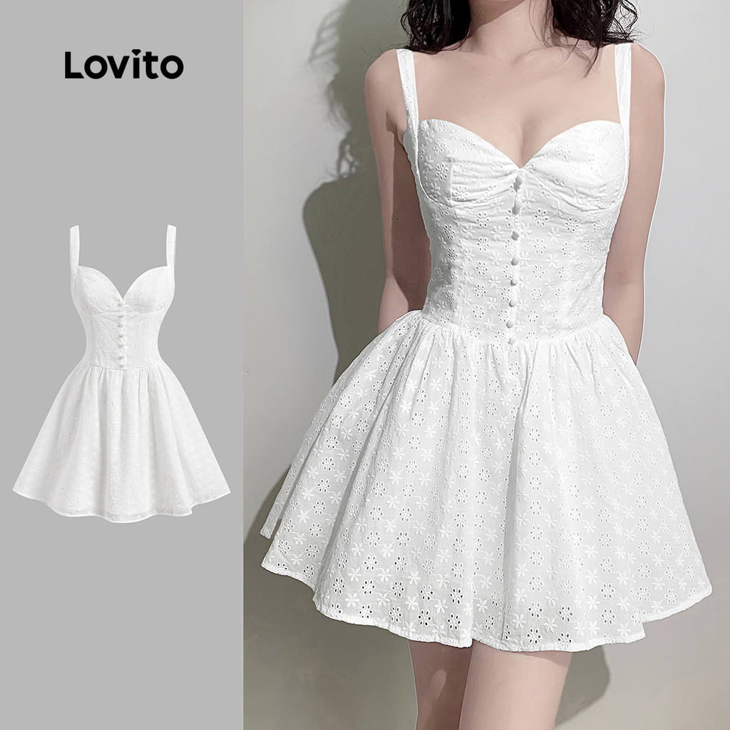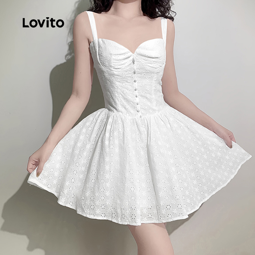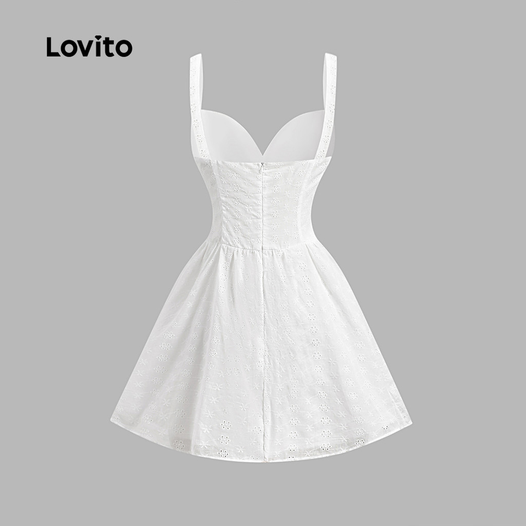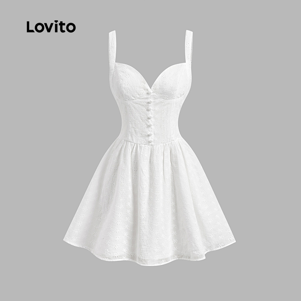 Lovito Vestido Boho Liso Com Bordado de Ilhós, Ideal para Verão/Primavera Feminino L132ED367