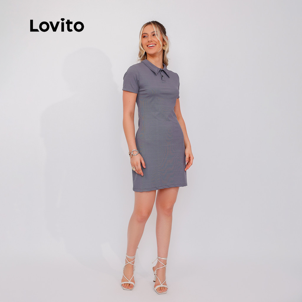 Lovito Vestido Curto Polo Cinza Manga Curta LB846BRL876