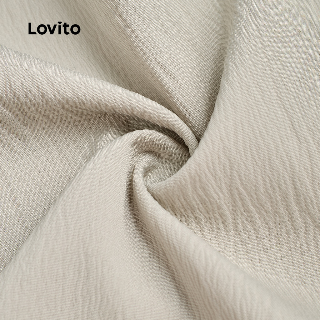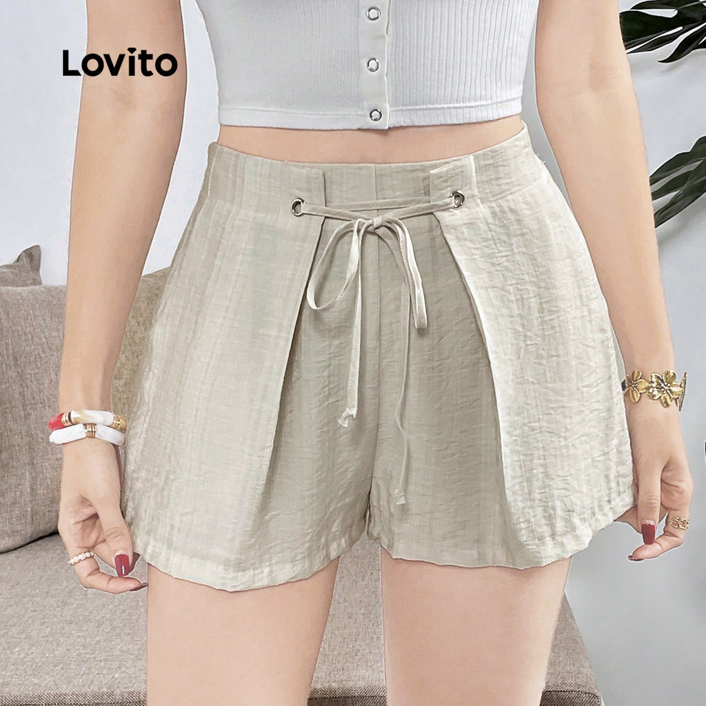 Lovito Shorts Casuais Lã Pliçada com Amarração Primavera/verão Shorts Caqui para Mulheres L155ED031