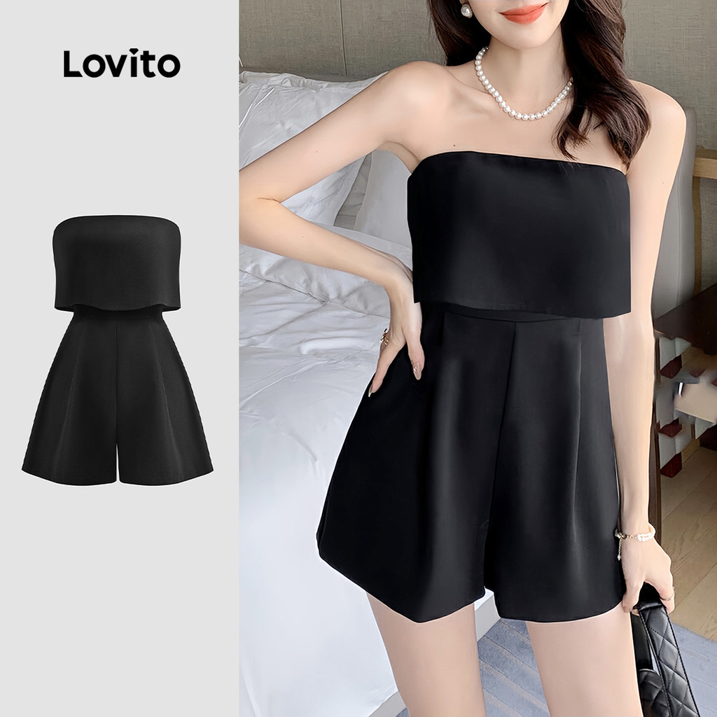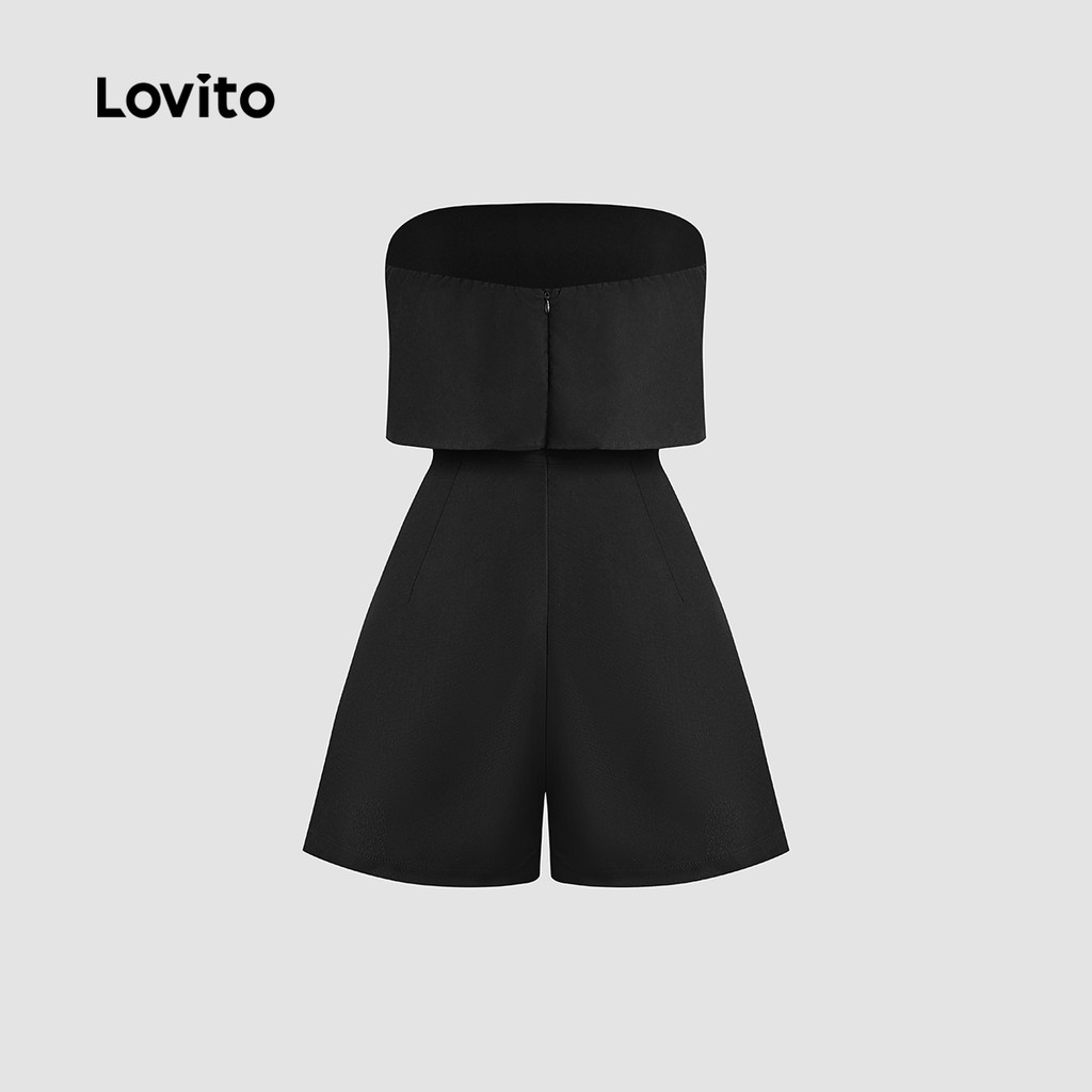 Lovito Macacão Casual Feminino Liso Ombro à Mostra Manga Longa Verão Primavera L128ED248