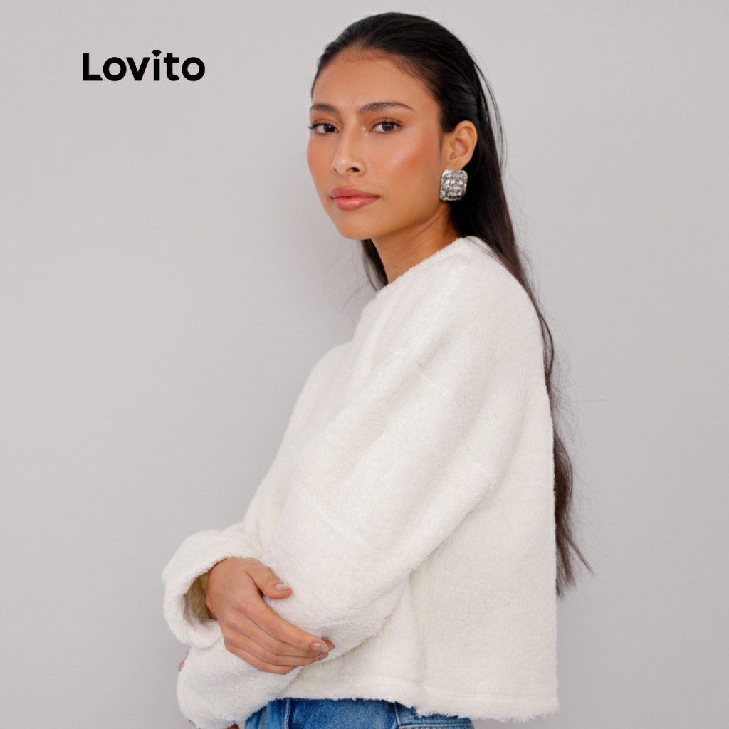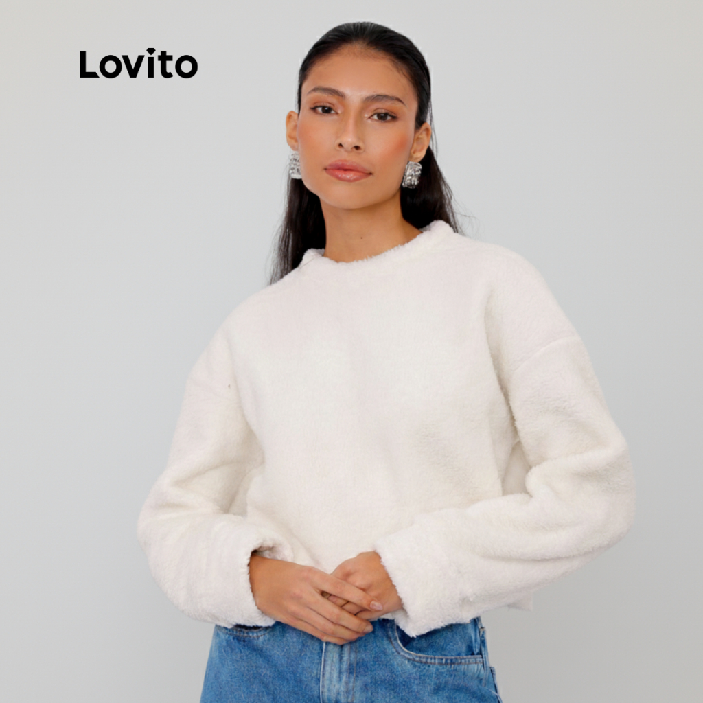 Lovito Blusa Pelo Ted Bear Casual Liso para Mulheres LB600BRL630