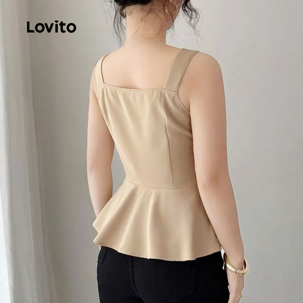 Lovito Camisa Casual com Botão Superior Leve e Confortável para Primavera/verão Cor Cáqui clara L138ED145