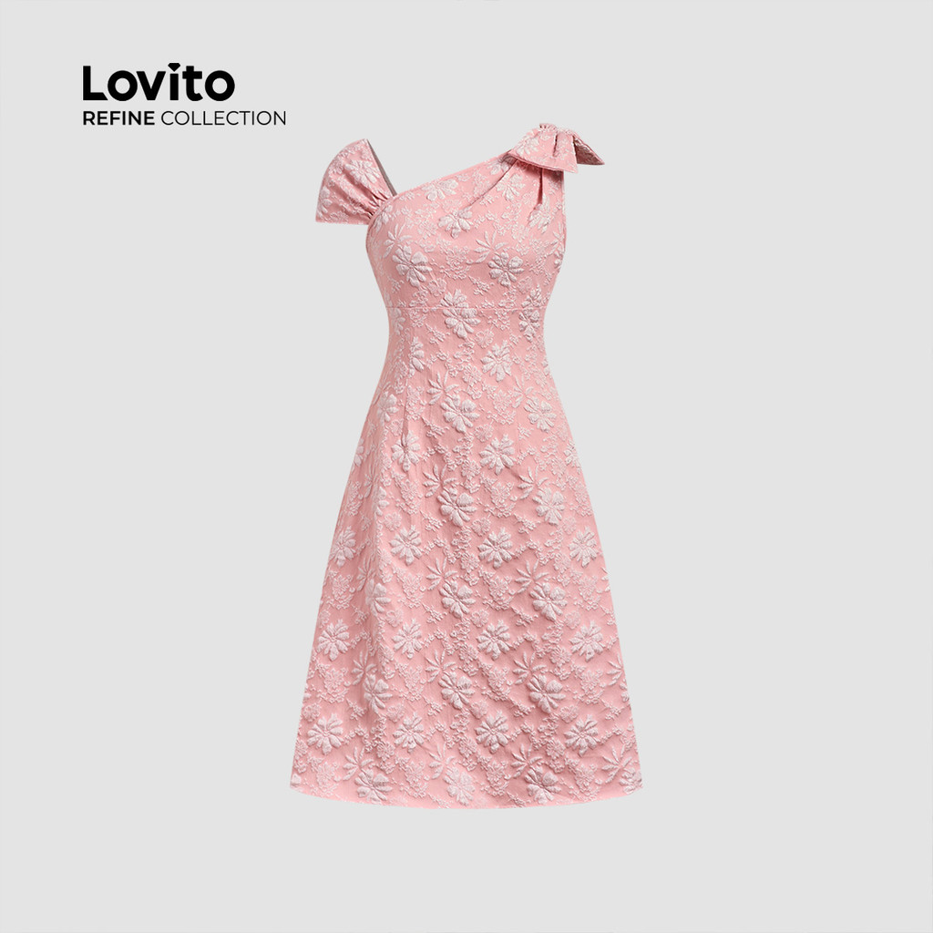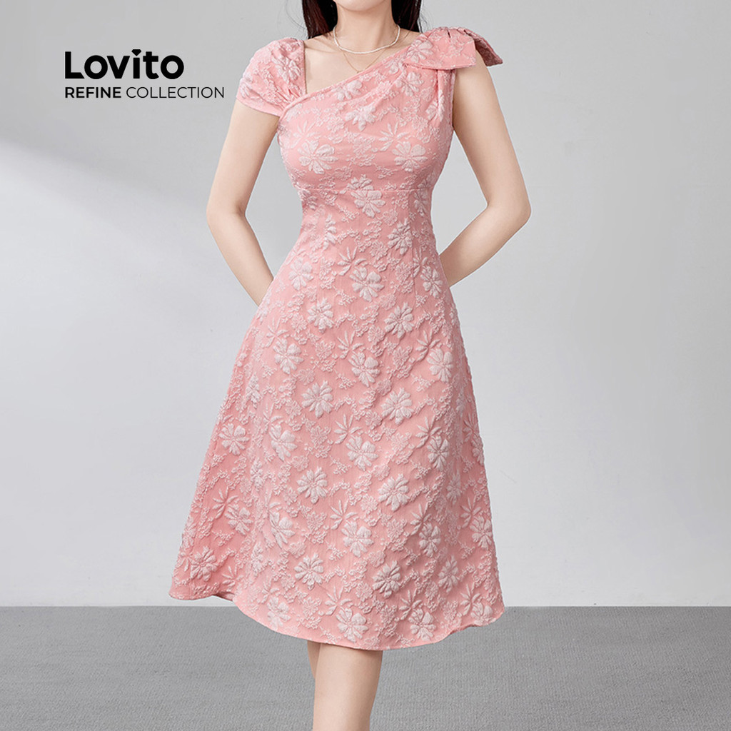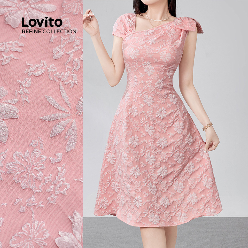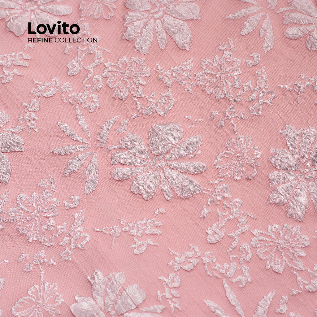 (New) (Lovito Refine) Vestido Elegante de Jacquard com Flores Primavera/verão Vestido Rosa para Mulheres LR18E019