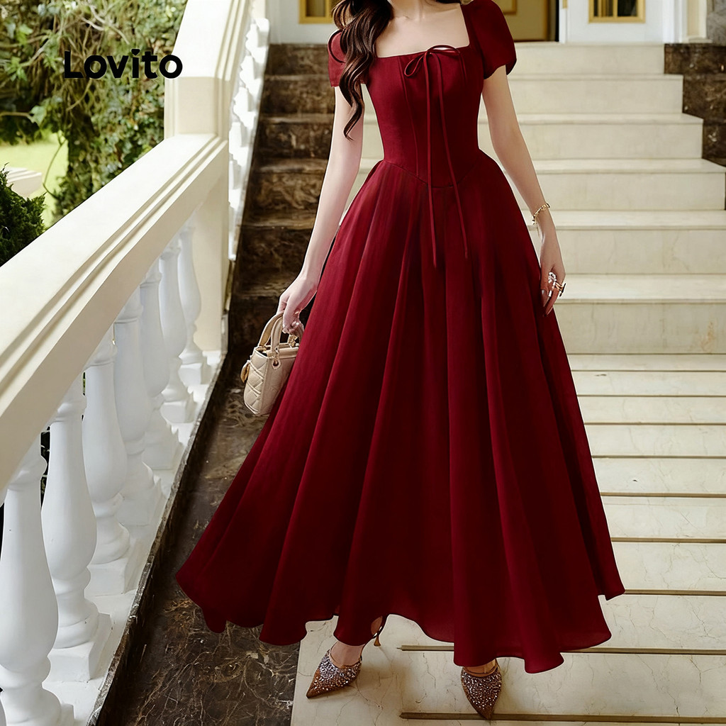 Lovito Vestido Longo Elegante Com Amarração Nas Costas Na Cor Roxa Ou Bordô Primavera/verão para Mulheres L149ED628