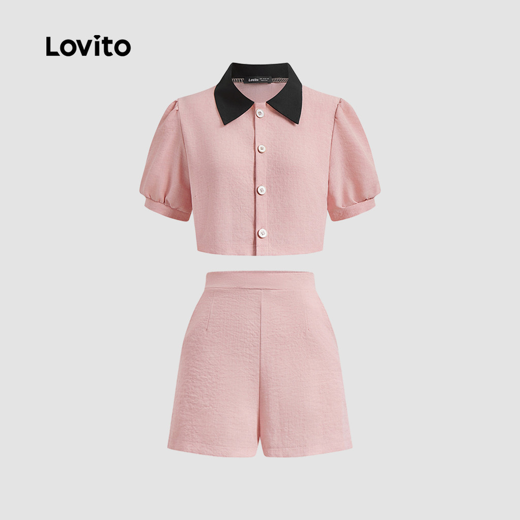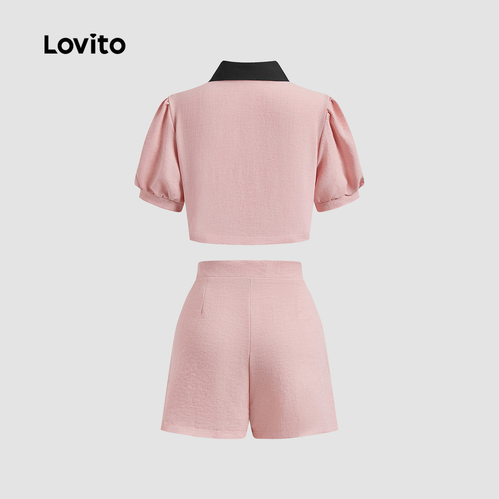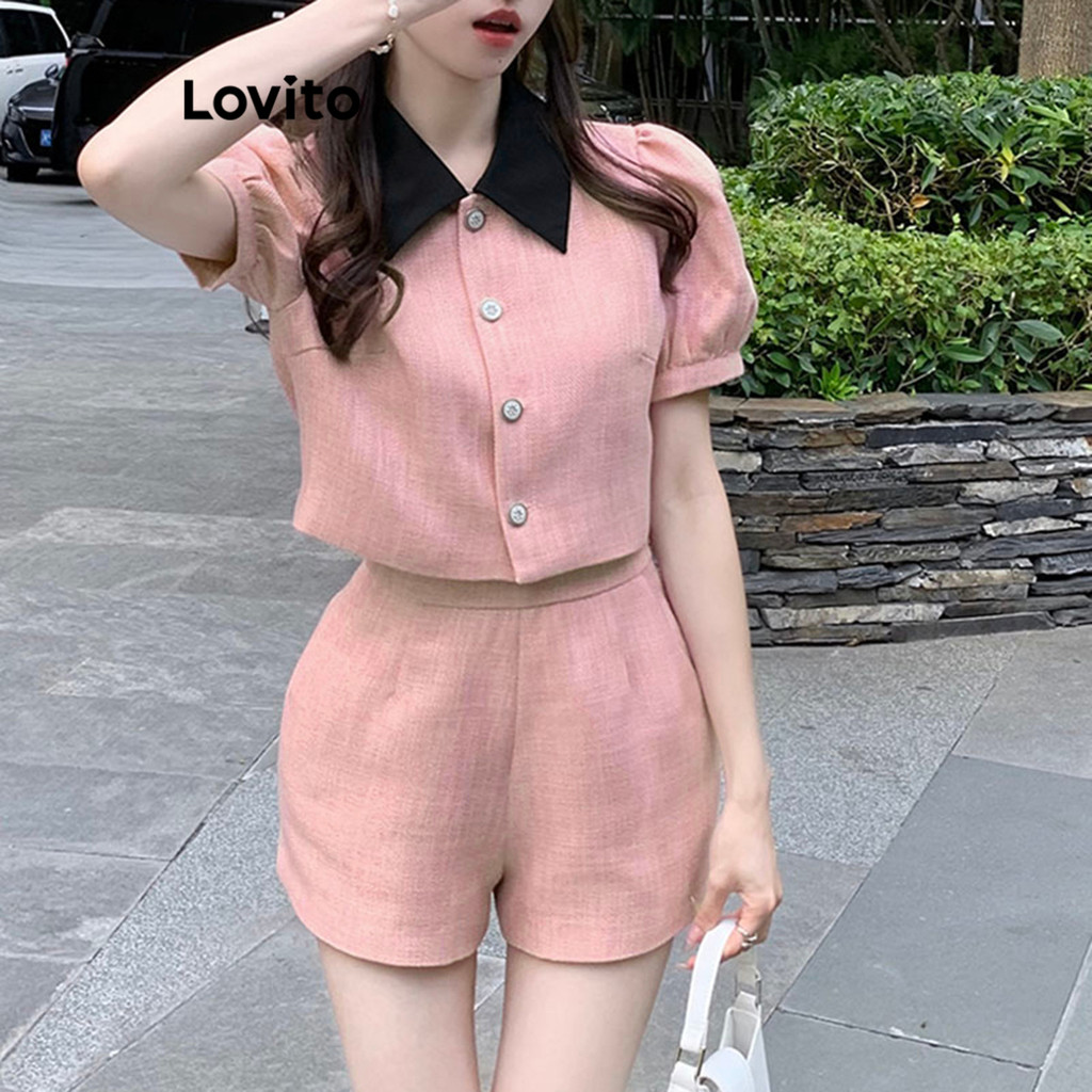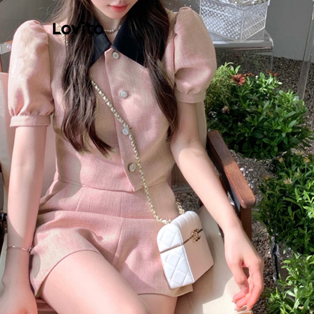 Lovito Conjuntos De Shorts Elegantes Conjunto De Shorts De Tweed Colorblock Liso Para Mulheres LNE16207\4