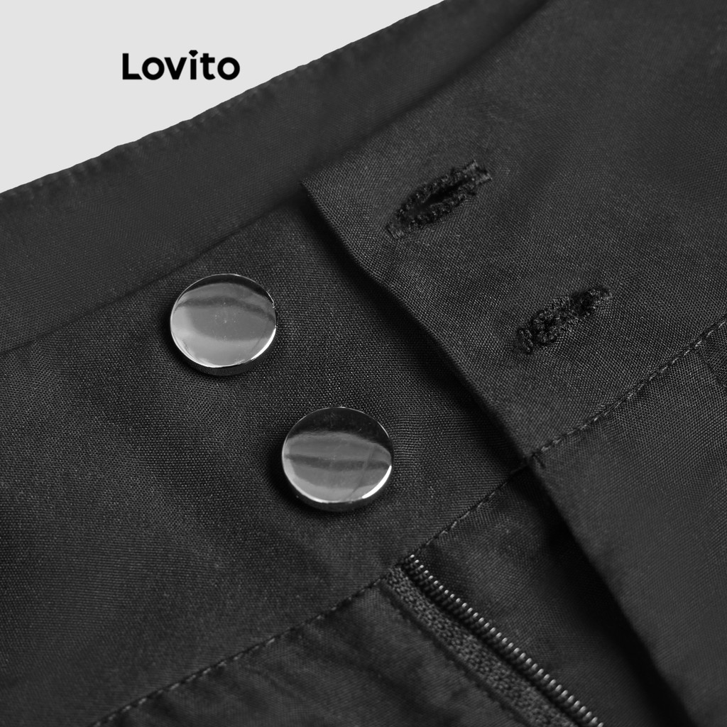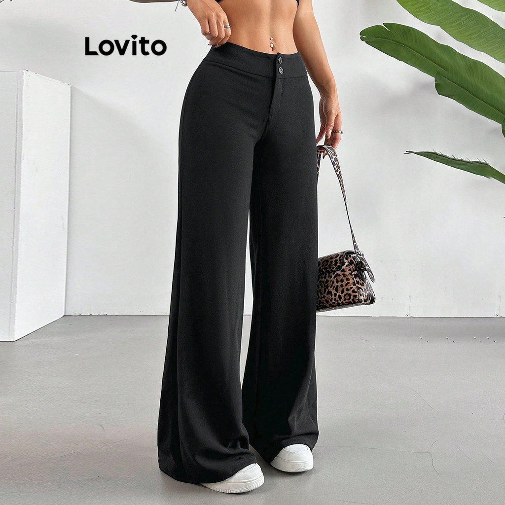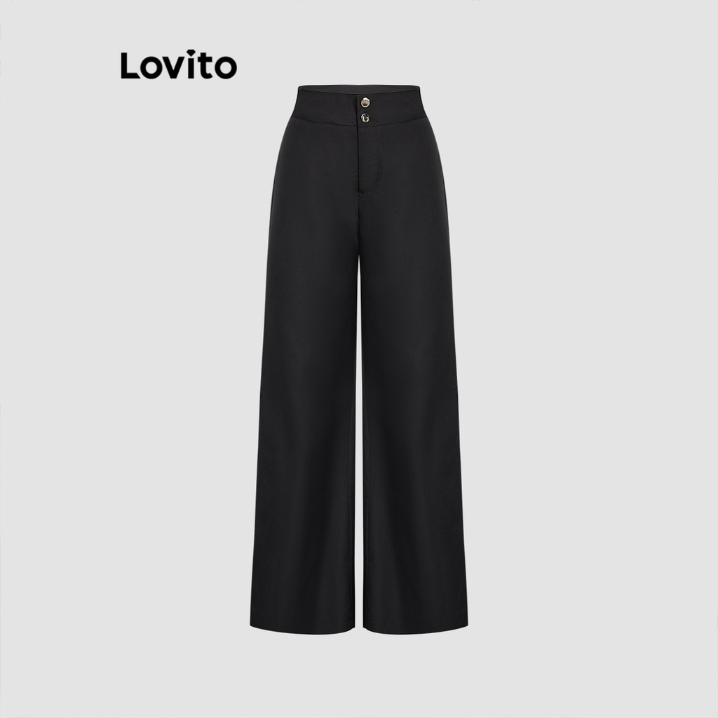 Lovito Calça Casual Calça Lisa Com Botões Para Mulheres L118ED160\5