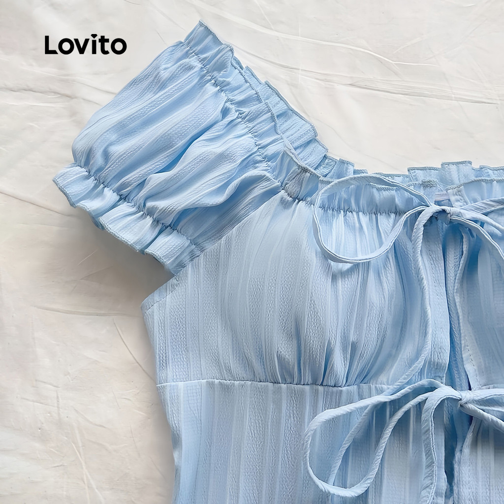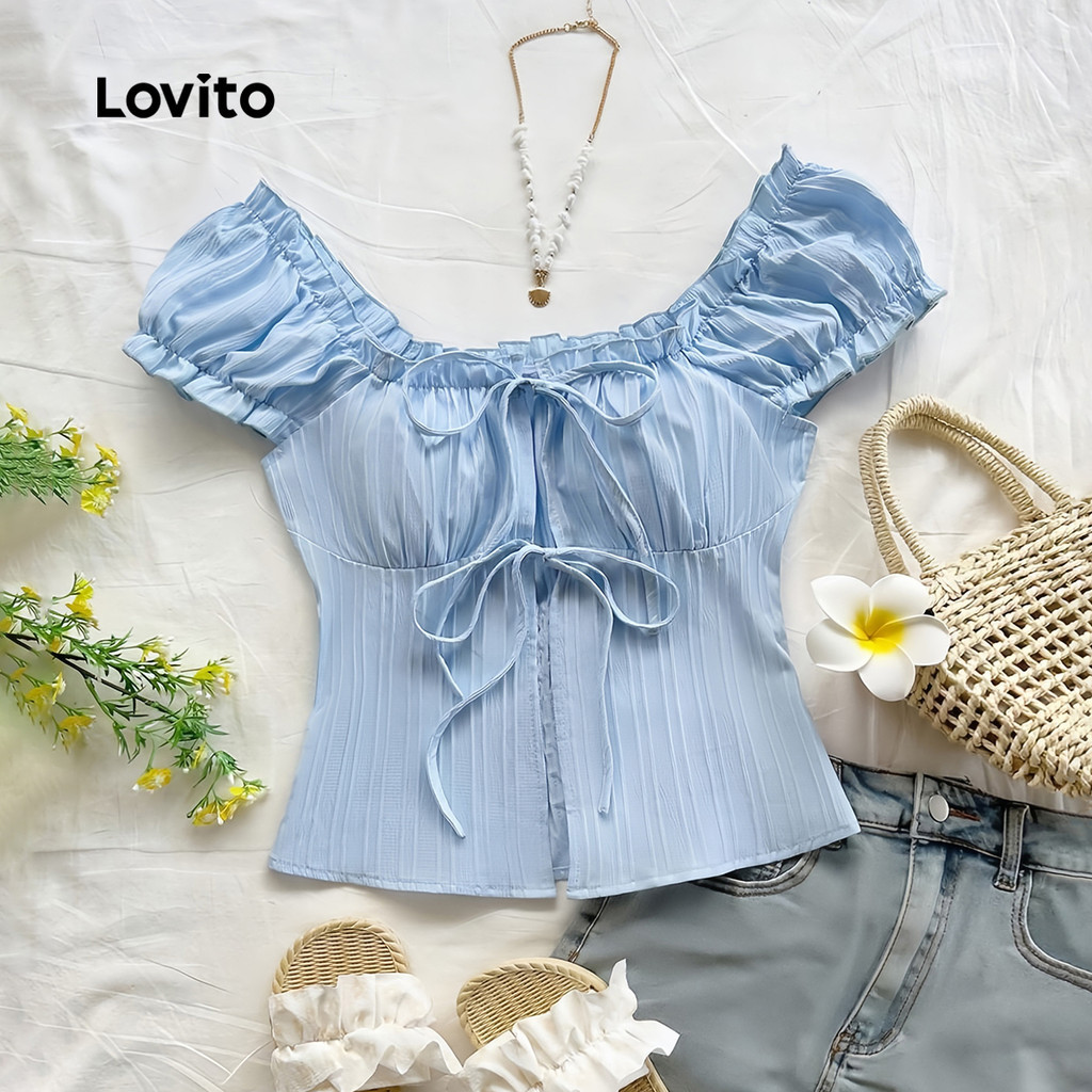 Lovito Blusa Casual de Renda com Laço Acabamento de Alface Rosa Primavera/verão para mulheres L139AD009
