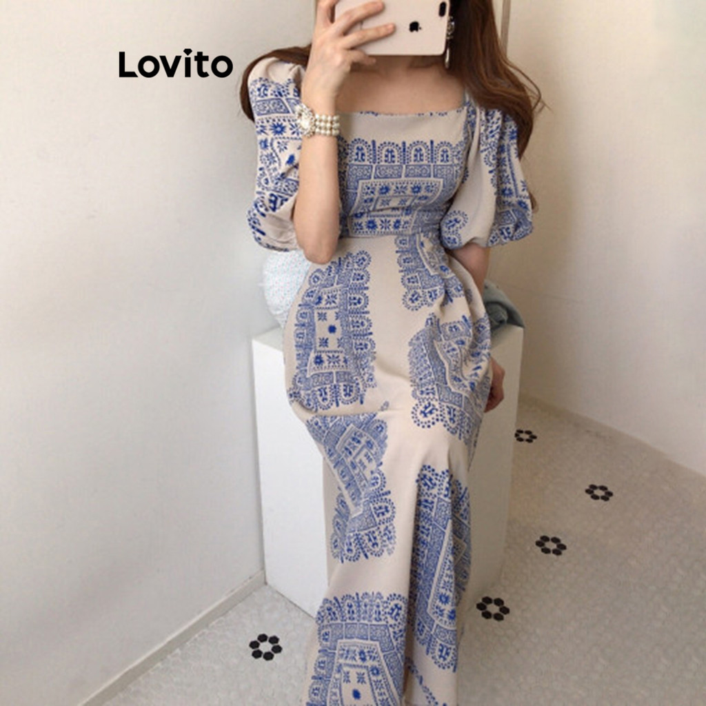 (Trendy) Lovito Vestido Casual Ditsy Floral Padrão Vestido Para Mulheres LNE68295
