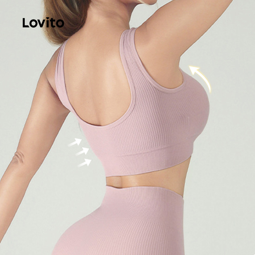 Lovito Top Esportivo com Push-up Vermelho Reduz O Impacto e Evita Vazamento de Lateral rosa LNE112X018