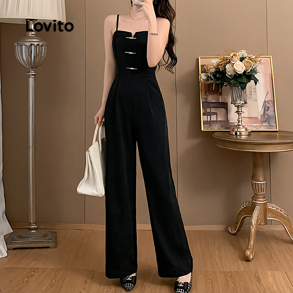 Lovito Macacão Casual com zíper liso para mulheres L132ED318