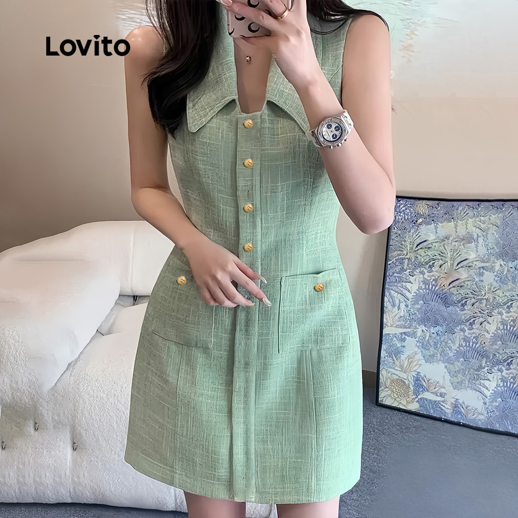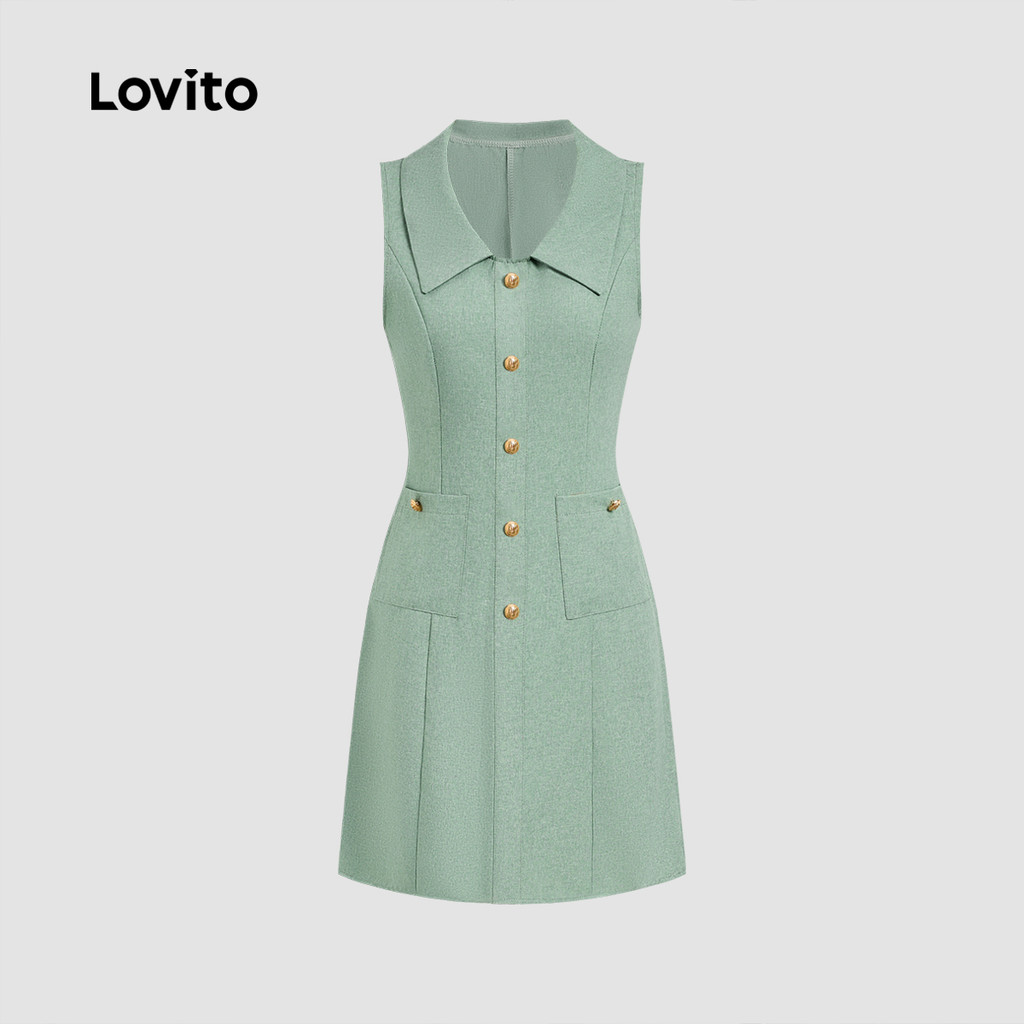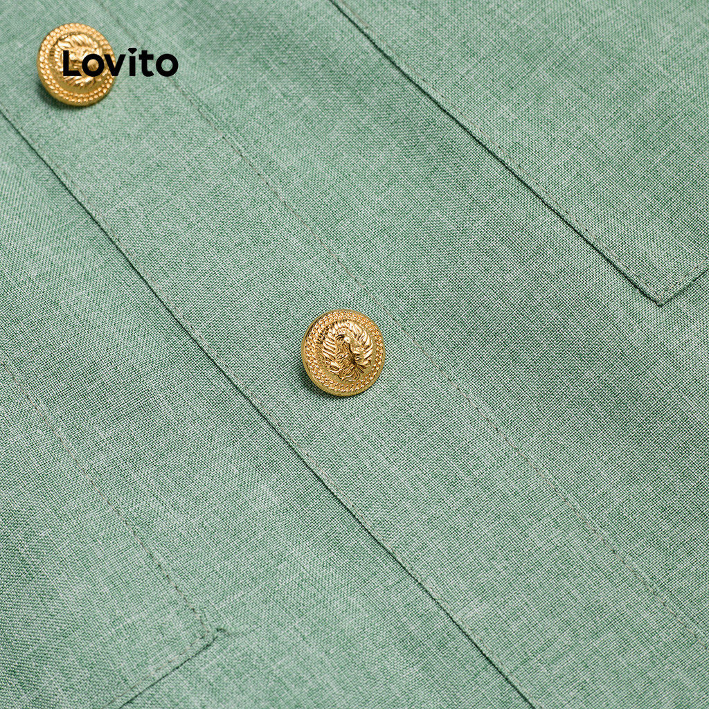 Lovito Vestido Casual de Botão com Pregas para Primavera/verão Verde para mulheres L142ED664